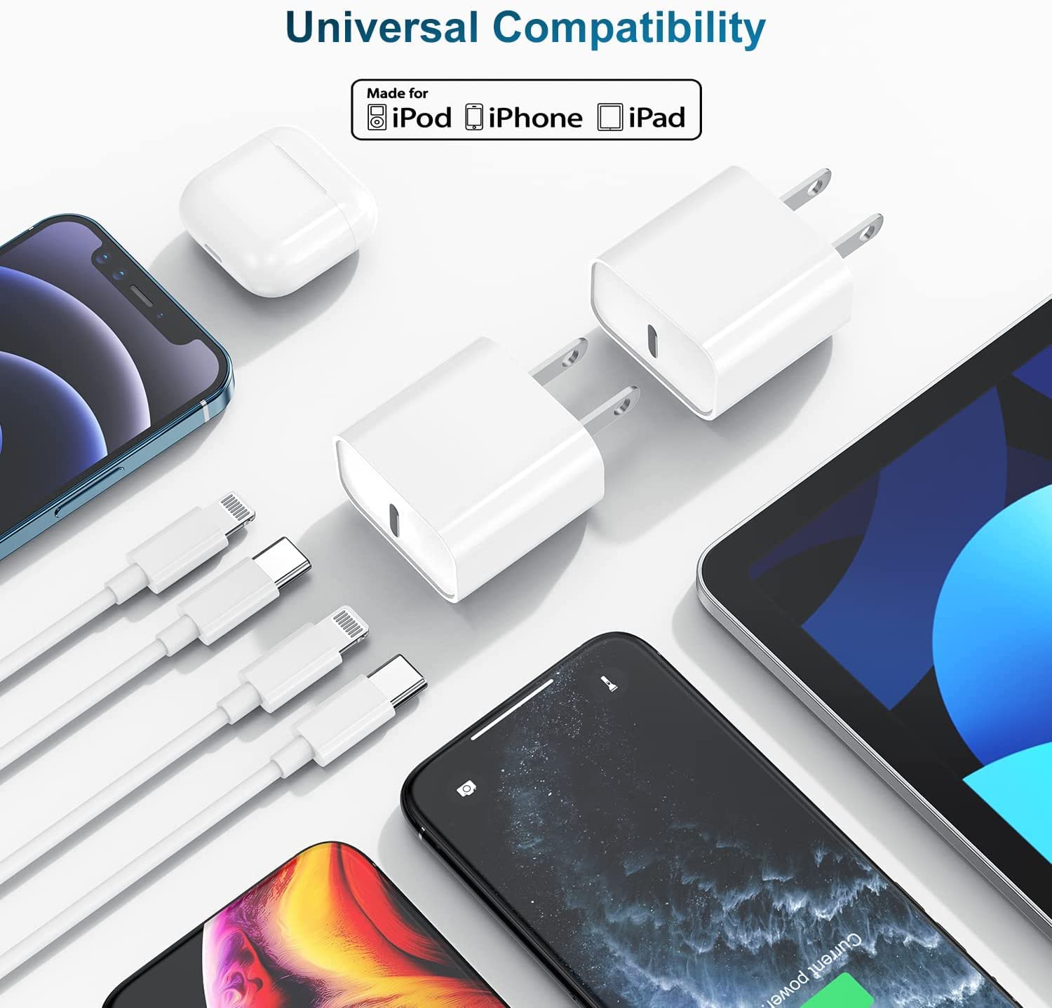 • 【Widely Compatible】: suitable for iPhone 14/14 Pro/13/13 Mini/13 Pro/13 Pro Max/iPhone 12/12 Mini/12 Pro/12 Pro Max/SE 2020/11/11 Pro/11 Pro Max/XR/XS Max/XS /X 8 Plus, iPad. This fast charger can also charge iPhone 7 6 Plus, iPhone 5 5c 5s SE at the original charging speed.