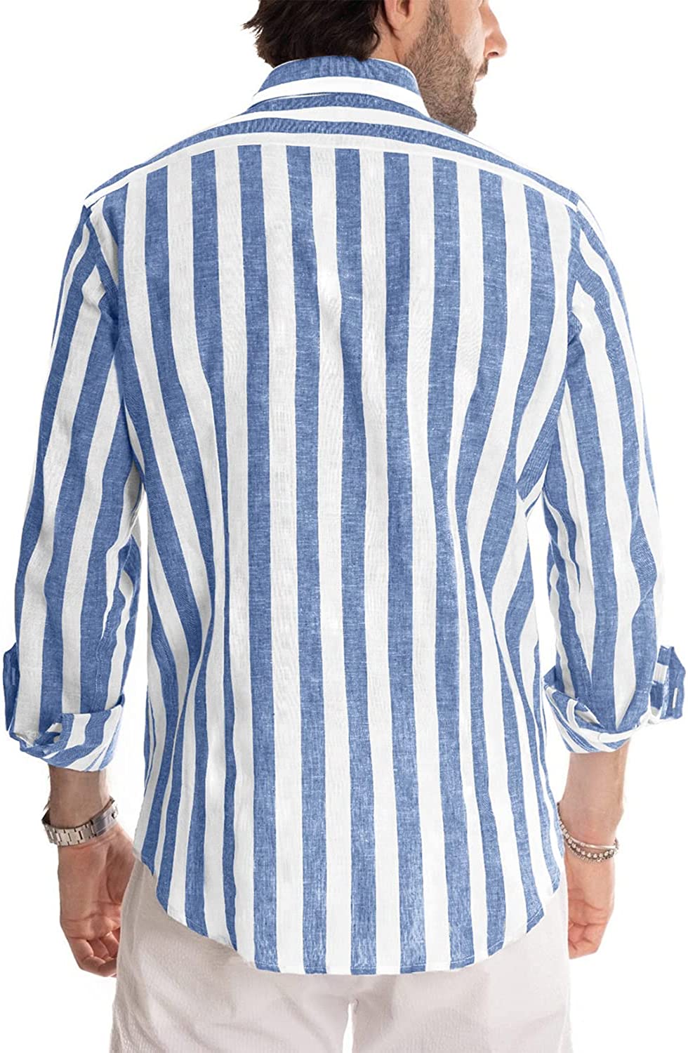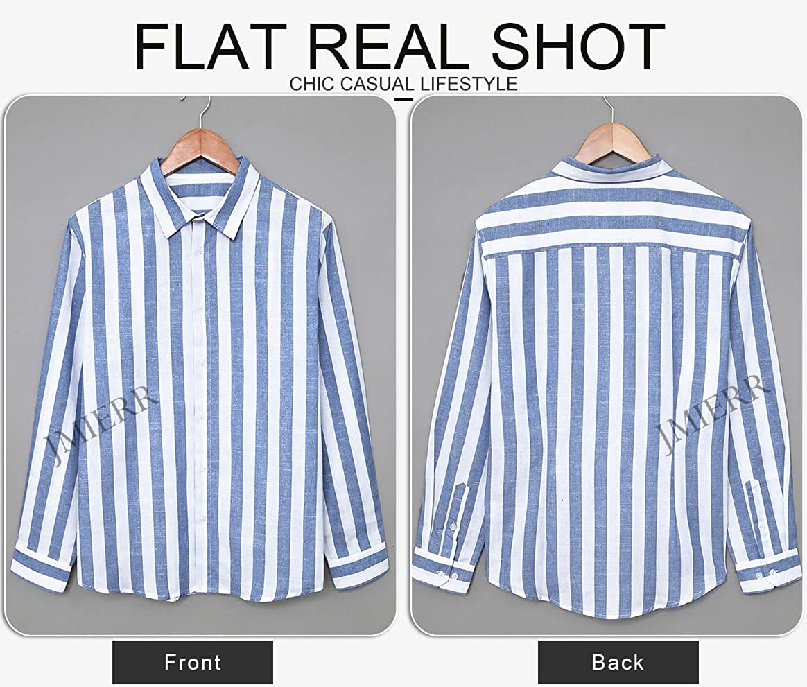 JMIERR Men's Casual Stylish Long Sleeve Button-Down Shirts Striped Dress Shirts Cotton Shirt
