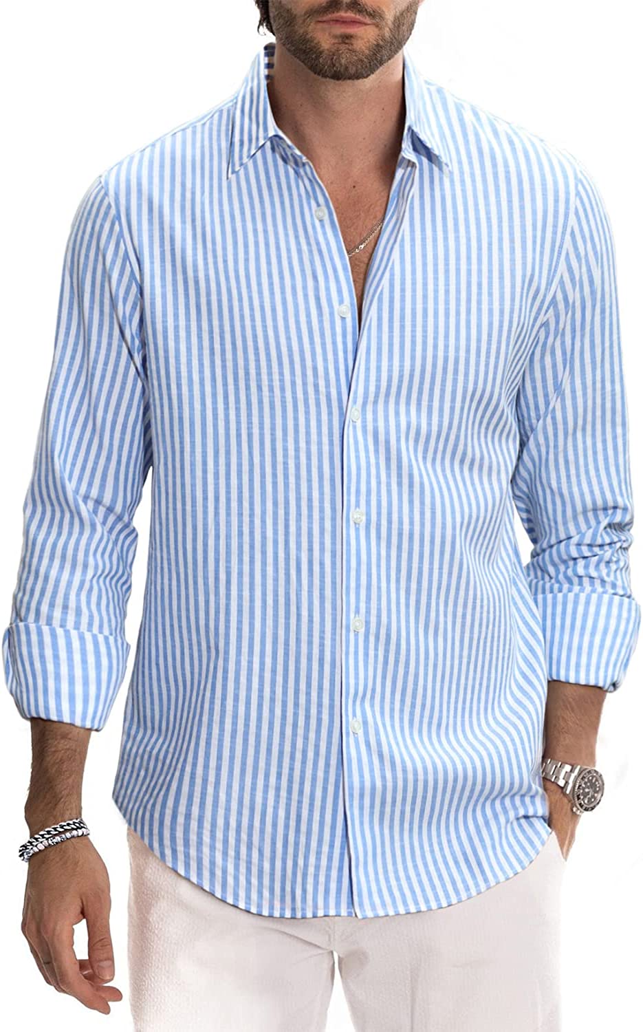 • Material: Our JMIERR Fashion Men's 2023 Button Down Long Sleeve Shirts are crafted with high-quality cotton fabric, offering the look and feel of linen. The fabric is soft, breathable, lightweight, and skin-friendly, making it perfect for both casual and dress occasions.