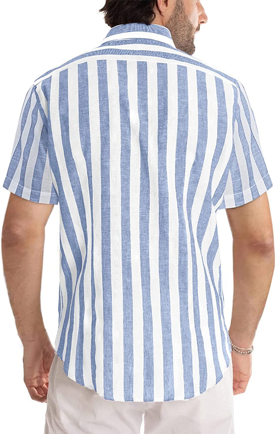 Design: Stylish casual short sleeve stripes button down shirt. This wardrobe-essential shirt features an easy, flattering fit. Perfect gifts for your boyfriend, son, husband, and yourself.