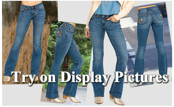 [Features]: Zipper button closure, bootcut jeans, stylish slim jeans with embroidery bell bottom jeans, mid-waist bootcut jeans.