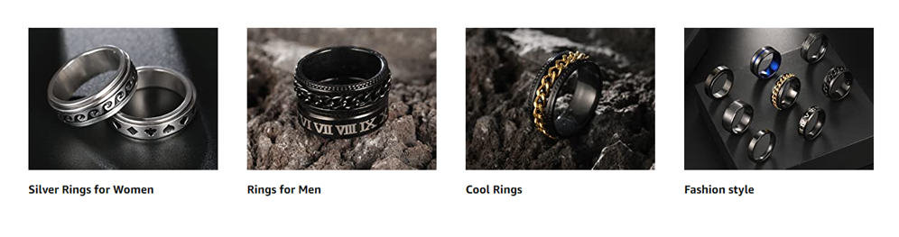 Stainless Steel Fidget Rings for Men, Sliver Fidget Rings for Anxiety for Women, Cool Spinner Ring Set, Black Mens Wedding Band Ring Pack