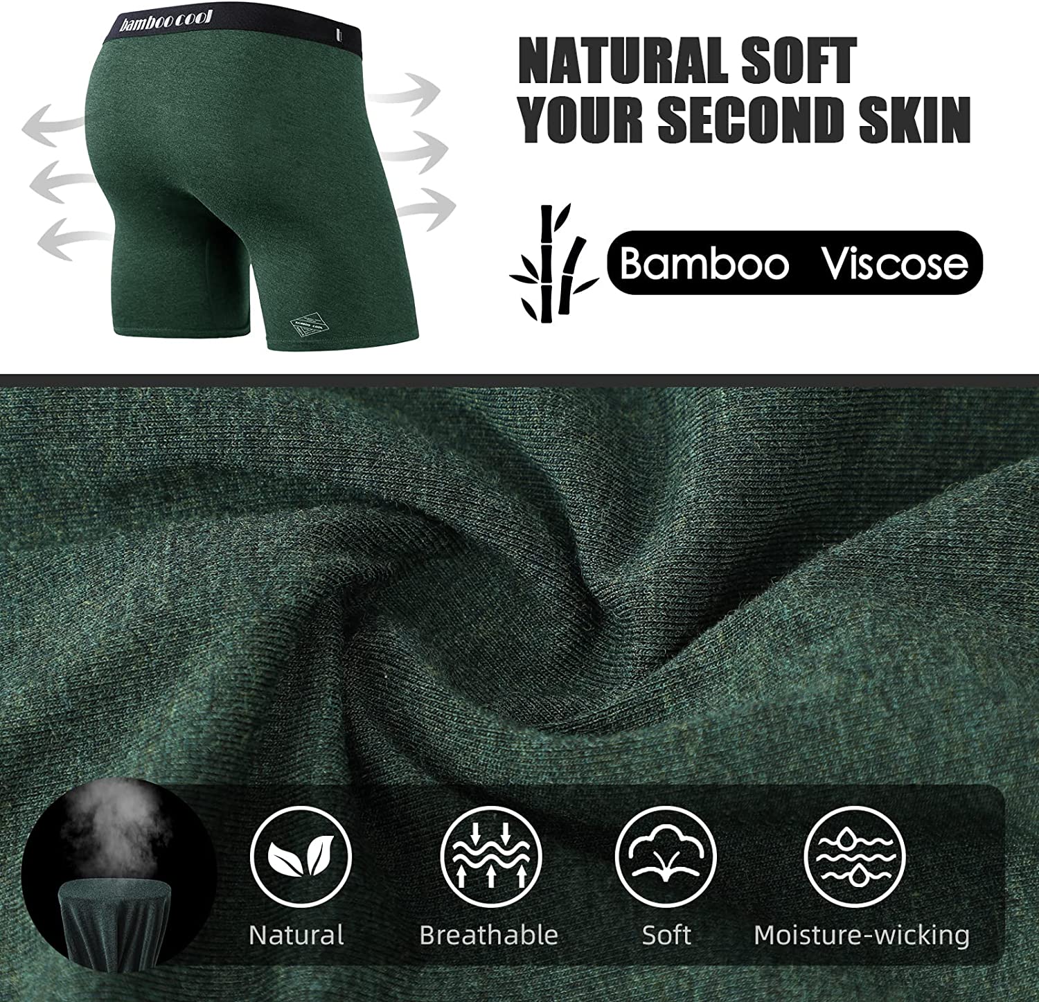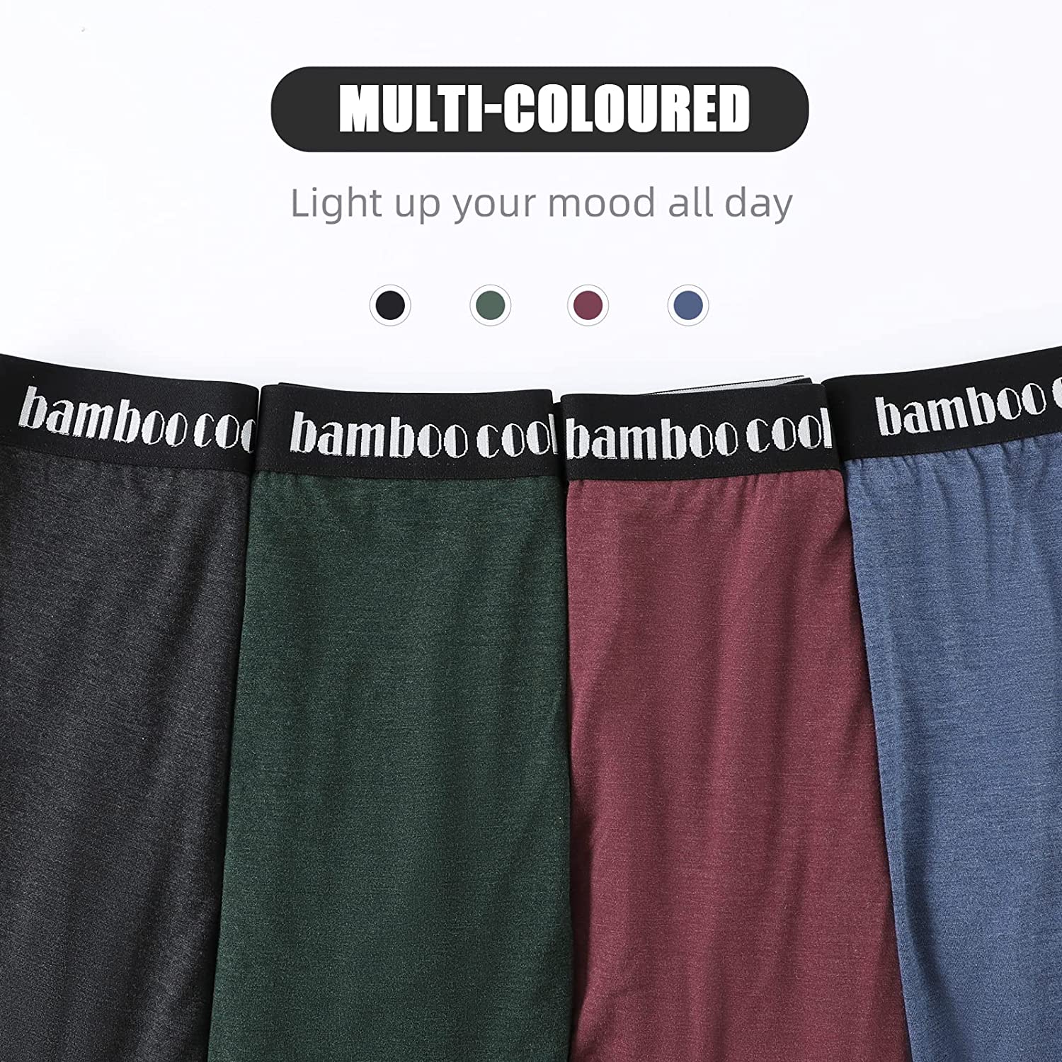 BAMBOO COOL Men’s Underwear Boxer Briefs Soft Comfortable Bamboo Viscose Underwear Trunks (4 Pack)