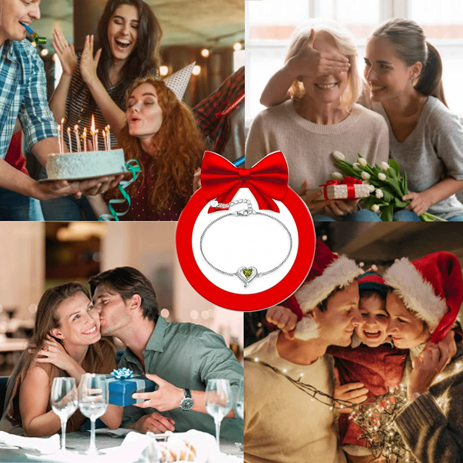 LAVUMO Heart Bracelet for Women 925 Sterling Silver Bracelet with Birthstone Zirconia,Adjustable Bracelet Best Mother's Day Gifts for Women Girls Chain Length 6.7"+1.6" Extend