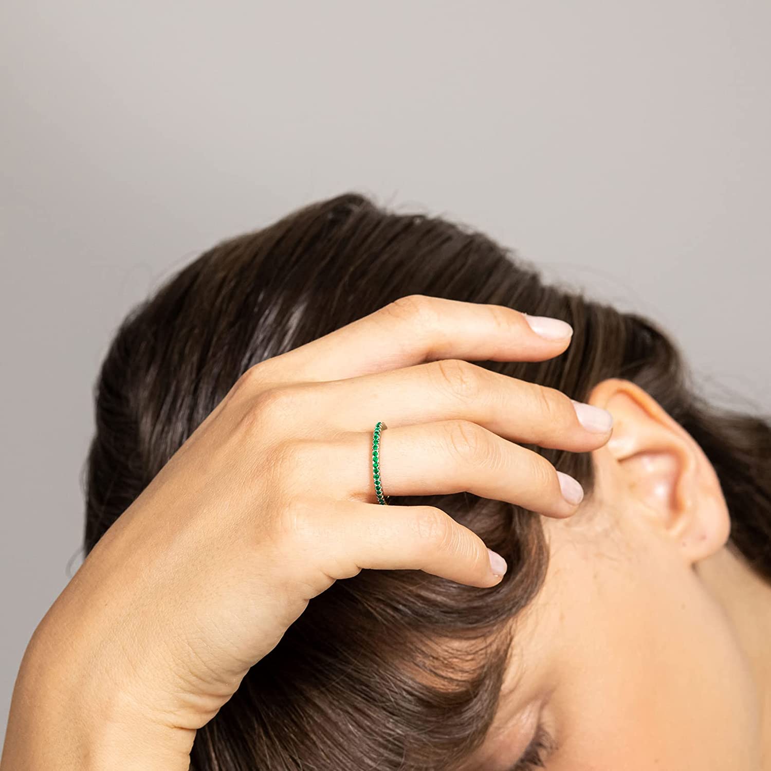 PAVOI 14K Gold Plated Sterling Silver Colored CZ Stones Stackable Ring | Simulated Diamond Eternity Bands for Women