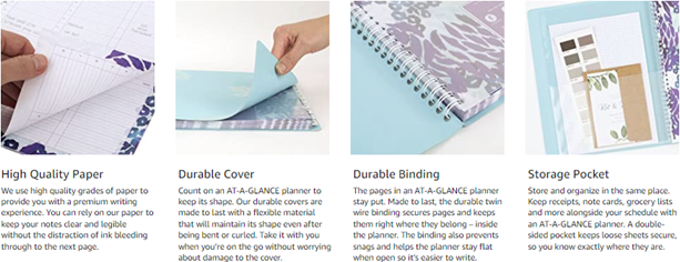 • INK BLEED RESISTANCE – Plan your schedule without fear of distracting ink bleeding. Our improved, high-quality paper is designed for superior ink bleed resistance, which keeps plans neat and legible.