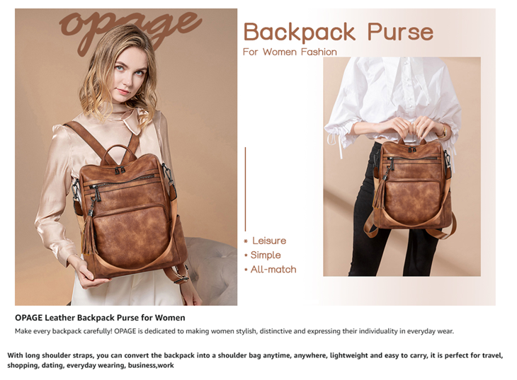 【High-quality Material】This opage leather backpack purse for women is made of premium waterproof and tear-resistant soft leather, and is designed with double metal zippers, there is a cute tassel next to the front zipper pocket. All of these are fashionable and durable.