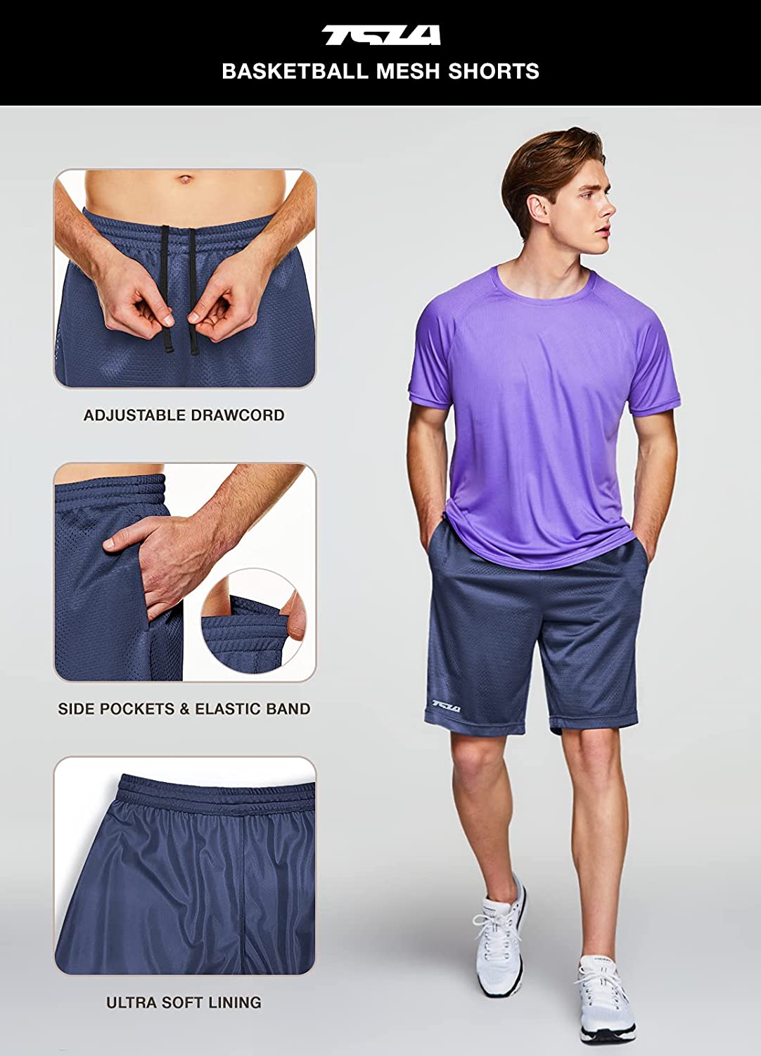 TSLA 1 or 2 Pack Men's Mesh Baseketball Shorts, Quick Dry Gym Training Workout Athletic Shorts, Running Shorts with Pockets