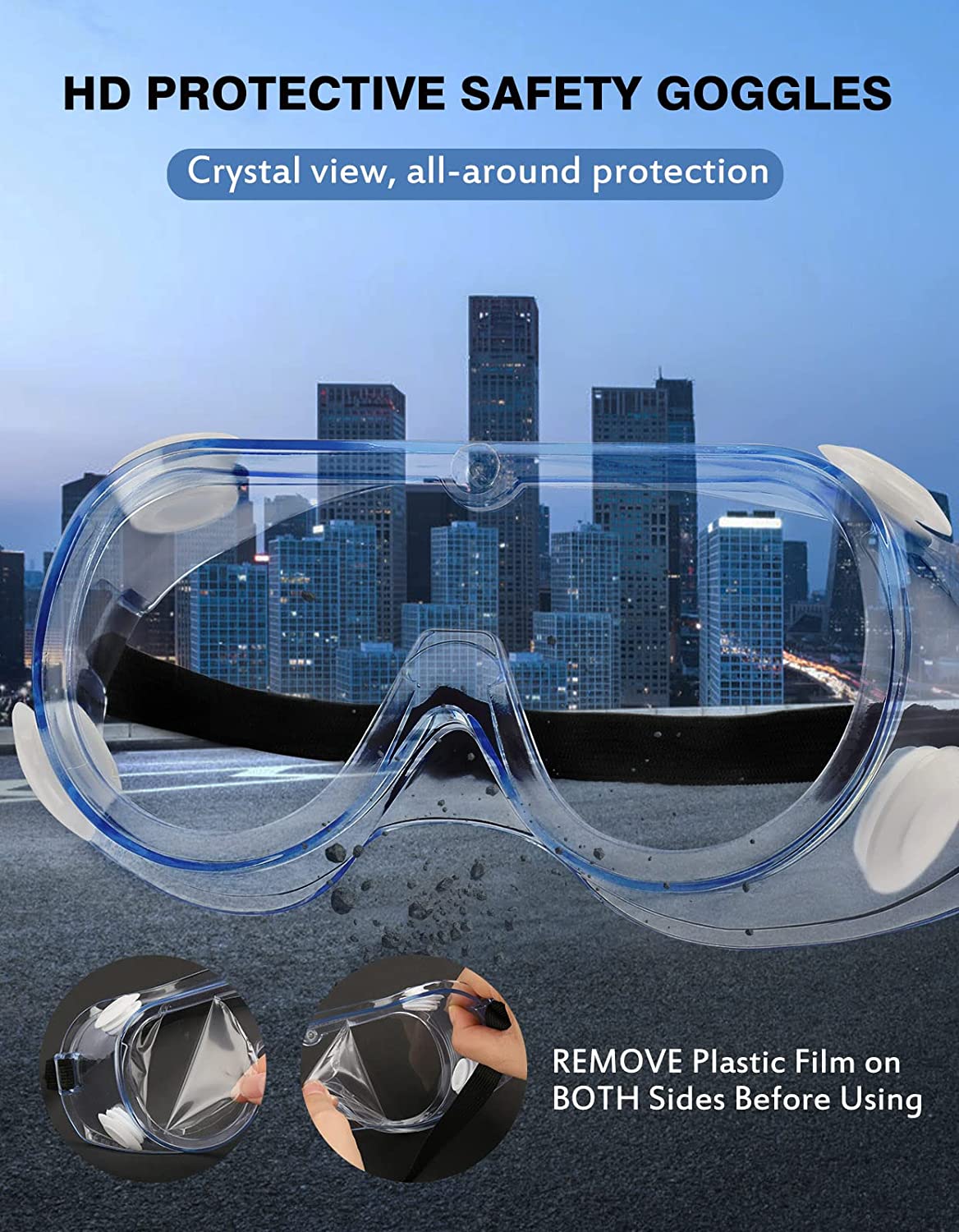 • Anti-Fog & Crystal Clear Lens- Made with polycarbonate lens, lab goggle chemical splash and Impact resistant goggle, clear anti-fog/anti-scratch coating protective eyewear, effective UV blocking, give you wide visual effect at any time.