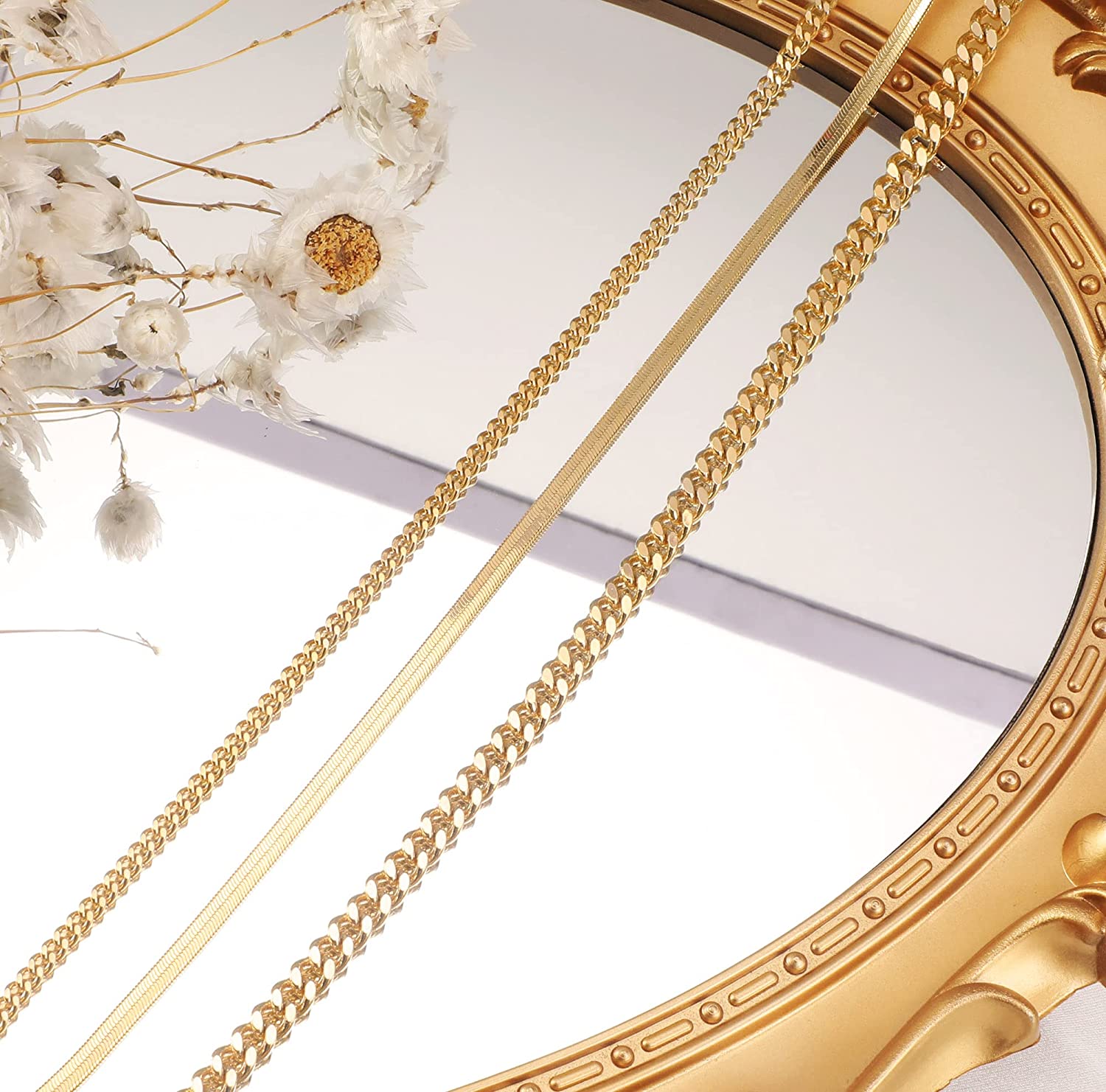• 【3Pcs GOLD ANKLETS SET】:? Set contains: ①Thin gold cuban link anklet ② thick gold cuban link anklet ③herringbone anklet. These anklets are suitable for layering as well as being worn alone.