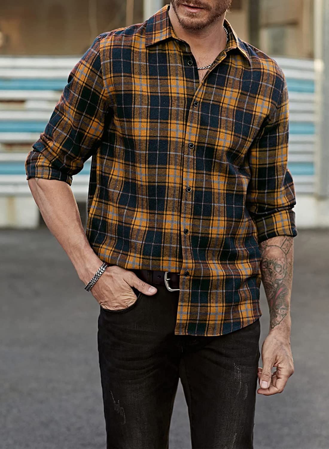 • Classic and Stylish: With their classic design and stylish appearance, mens shirts are a perfect choice for any occasion. The casual business flannel plaid button-down shirts not only make you look clean and well put together but also exude a fashionable vibe. The pure cotton fabric adds texture and enhances the overall aesthetic.