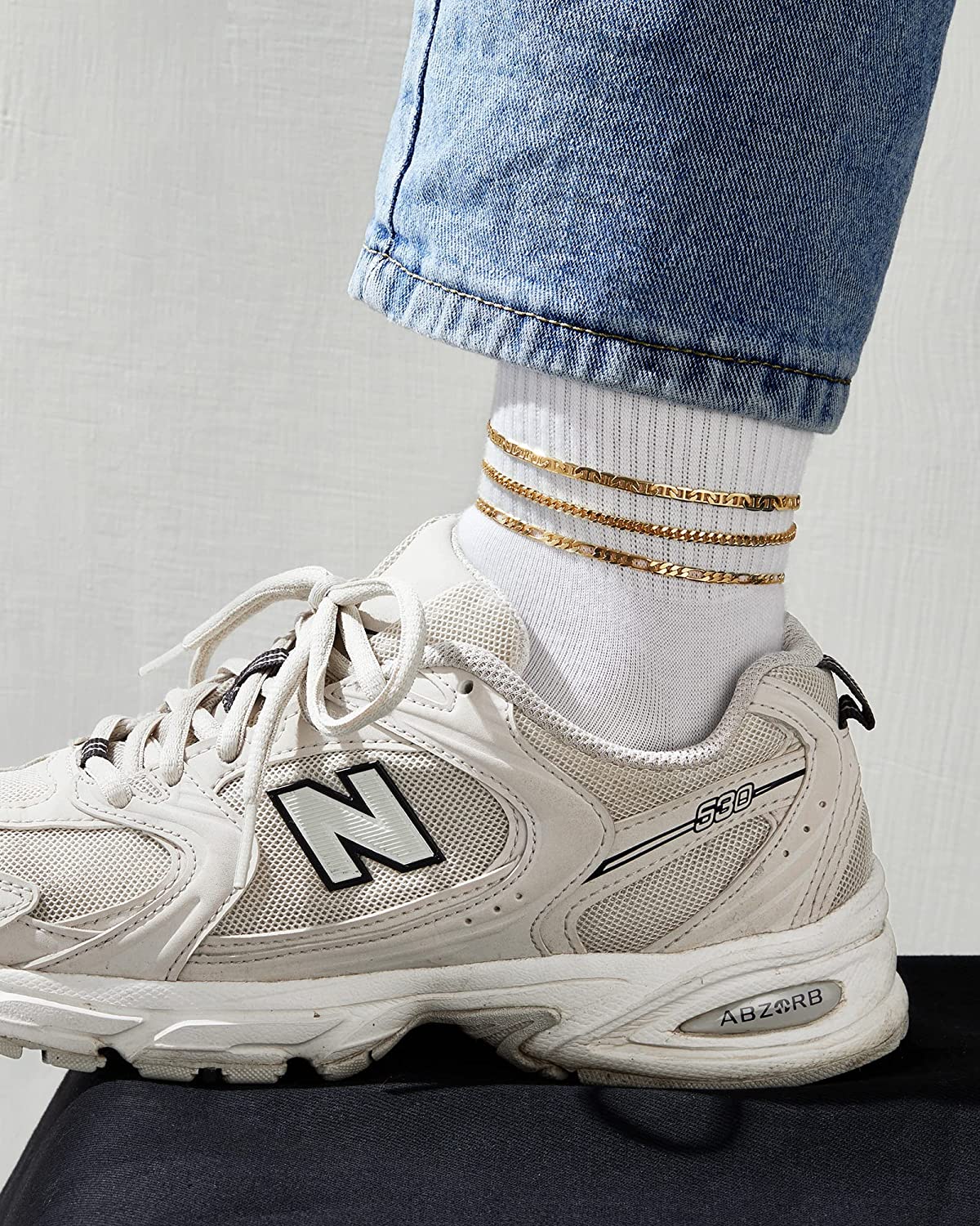 - [Ankle Bracelets for women]: The gold anklets set includes 3pcs, Thin gold cuban link anklet & gold figaro anklet & stud anklet. You can wear it alone or stack.