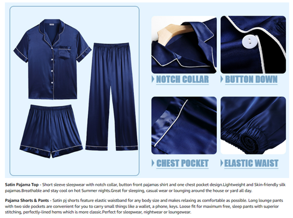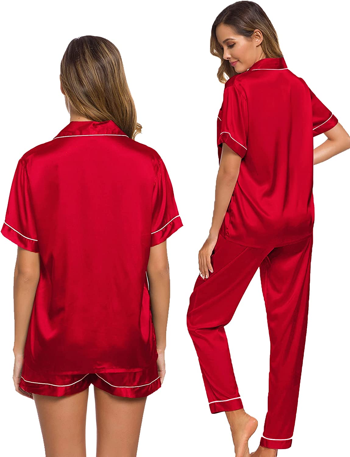 • 3PCS PAJAMA SET FOR WOMEN: Women's silk satin pajamas set comes with comfy short sleeve pajamas shirt, silky shorts, a pair of drawstring elastic waist pants. Classic short sleeve silk pajama set, you can match this sleepwear in differnt way to meet your needs all year around.