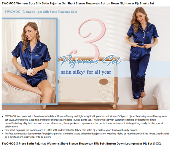 • PREMIUM SILK STAIN FABRIC: Women's 3pcs satin pajamas is made of high quality 95% Polyester, 5% Spandex silk satin material. Breathable and stay cool on hot summer nights.Great for sleeping, casual wear or lounging around the house or yard all day.