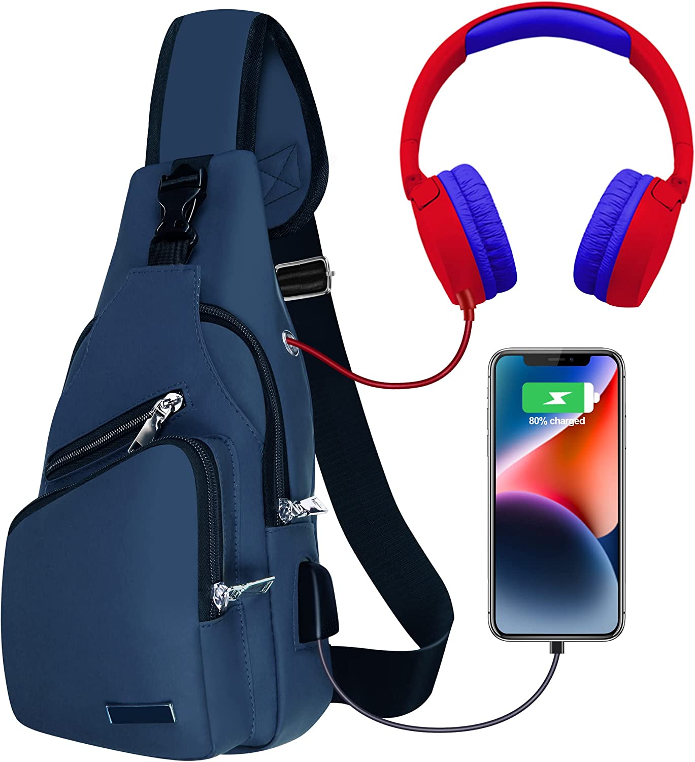 Sling Bag Crossbody Backpack for Women Men Chest Bag Hiking Bag with USB Charging Port for Camping Biking Travel Cycling