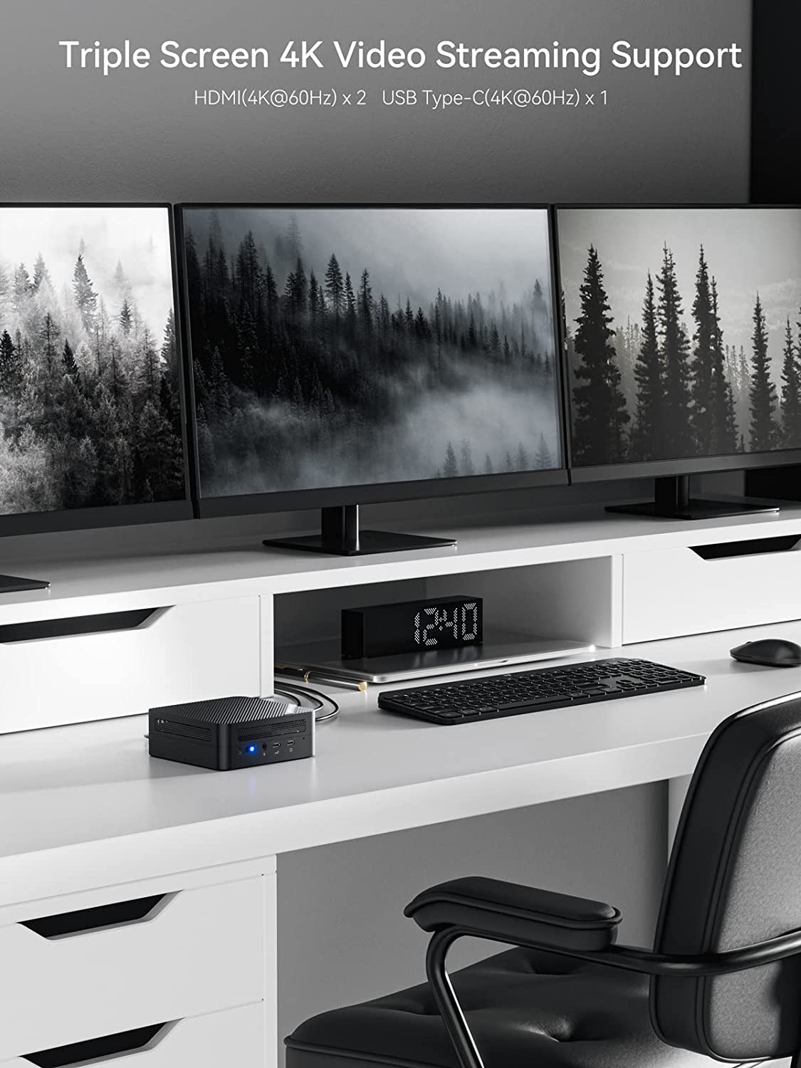 • 【8K Video Output】 UM790 Pro Personal Computer has four video output, 2x HDMI(4K@60Hz) and 2x USB4(8K@60Hz), which support multiple monitors display at the same time and provide a larger and wider filed of view and improve your work efficiency. With the special USB4 port, you could take advantage of high speed data transfer and can enhance the graphics function. [USB4 PD]Through the USB4 interface, a single cable can drive a 15w mobile display. And it supports touch function. *Supports up to 4k@160hz in 4k mode when using HDMI if the monitor is overclockable.