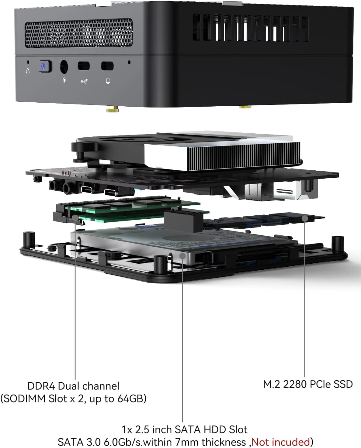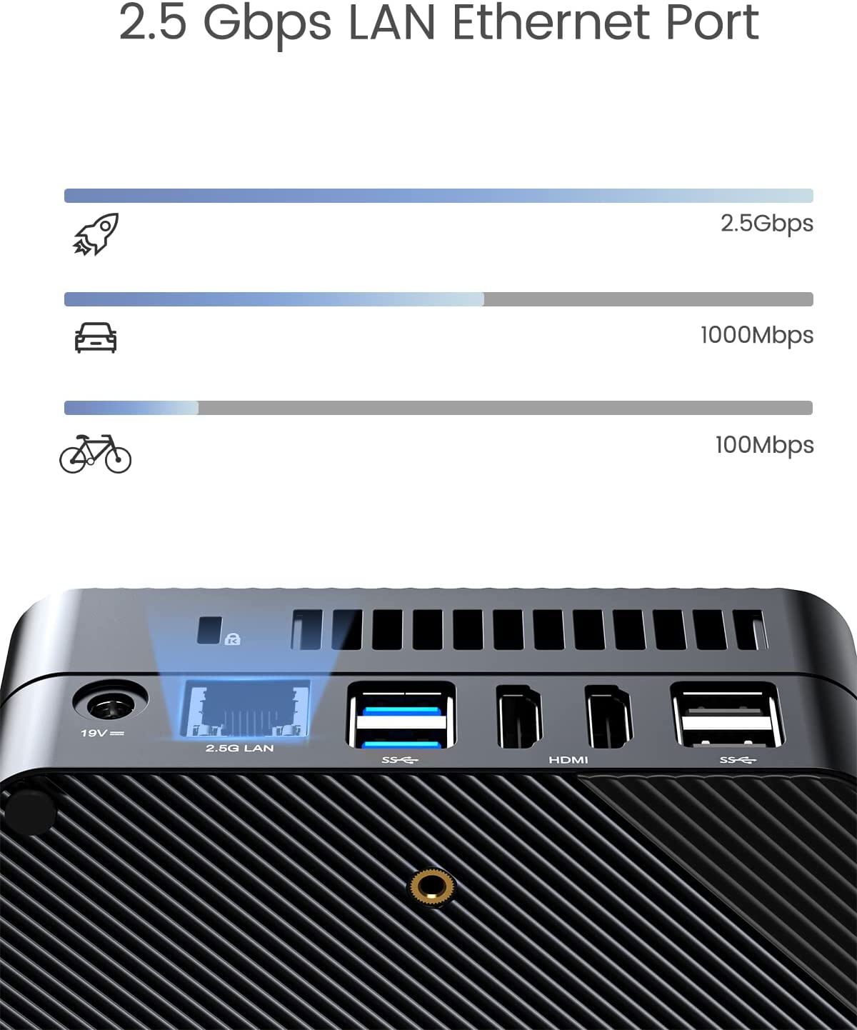 • 【2.5Gbps LAN】: This Mini PC comes with 2500Mbps Lan Port, it expands its functions and improved performance of computer to a large extent and allow you to use more networks such as software routers (OpenWRT / DD-WRT / Tomato etc.), firewalls, NAT, network isolation etc. It supports Auto Power On, PXT Boot, WOL, RTC Boot etc.