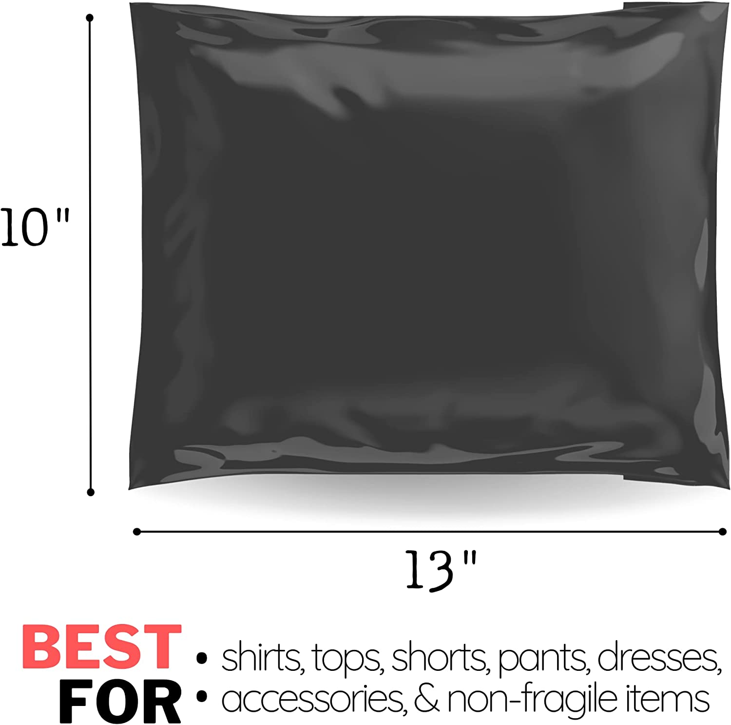 10x13 Poly Mailers Pack of 200 Shipping Supplies Envelopes Mailing Bags Clothing Plastic Small Business Sticky Self Seal Black
