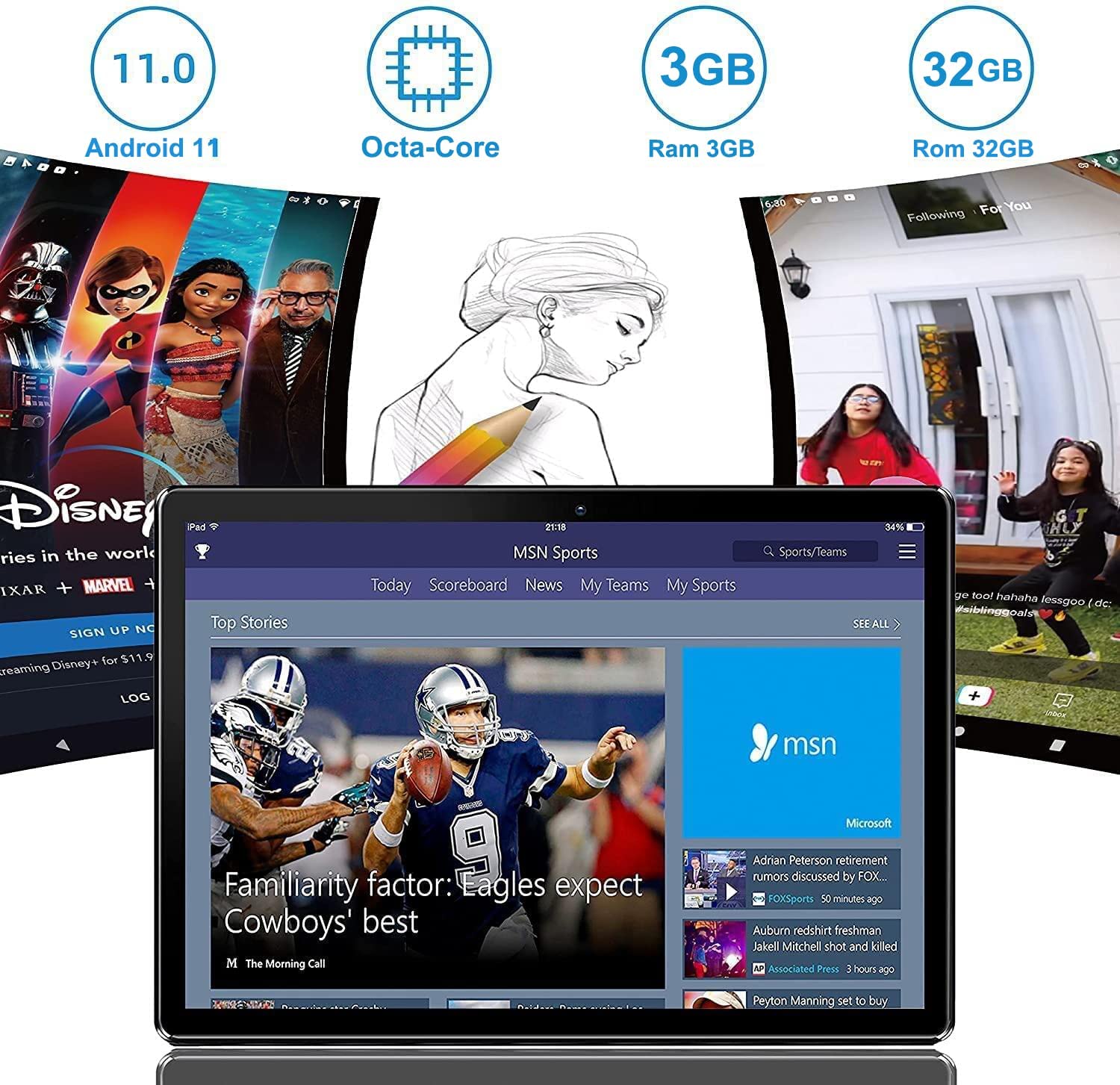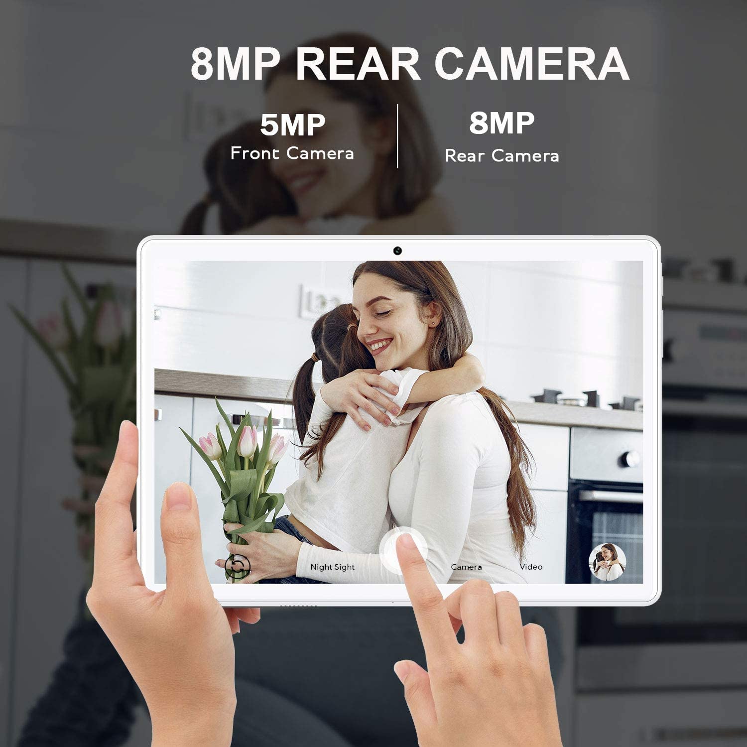 • 【Strong and High-Performance Processor】--This smart Android tablet is equipped with a powerful Android 11.0 system, The powerful processor makes the apps run faster and smoother, offers you a quick and fluent experience of entertainment. Tablet Android with certification of Google Mobile Service (GMS) and pre-installed Google Play supports Facebook, Twitter, YouTube, TikTok, Line, Instagram and other trendy social apps, Support Microsoft Office Software. 5MP front and 8MP rear with auto focus camera meet the basic needs of video talk and photography.