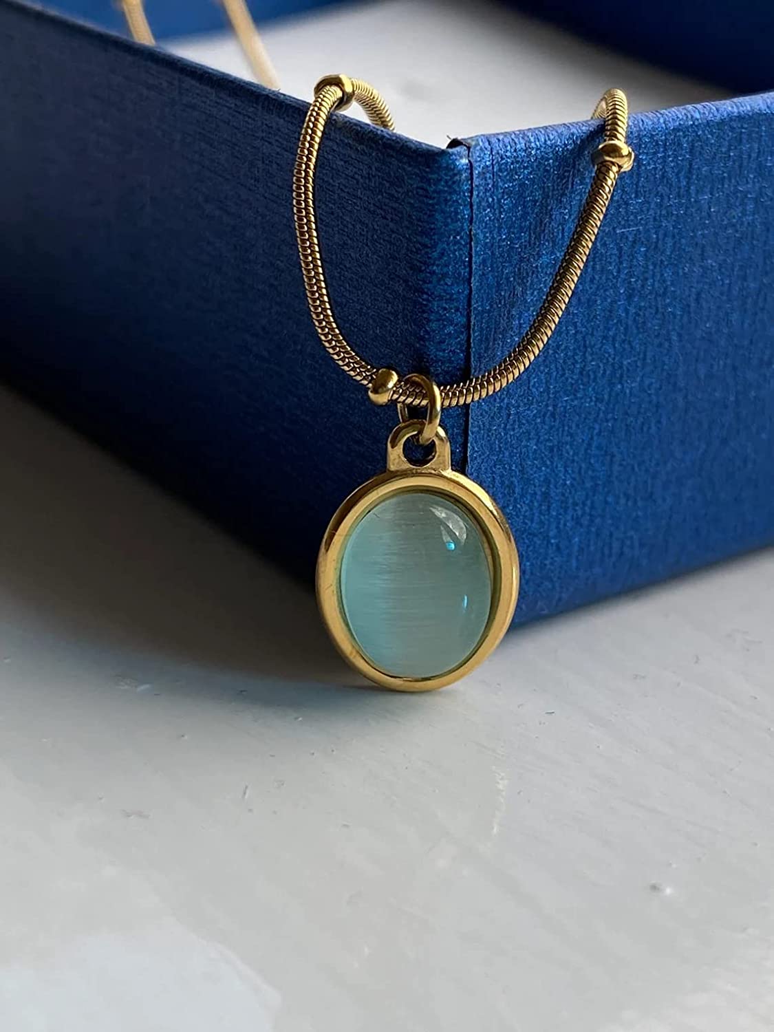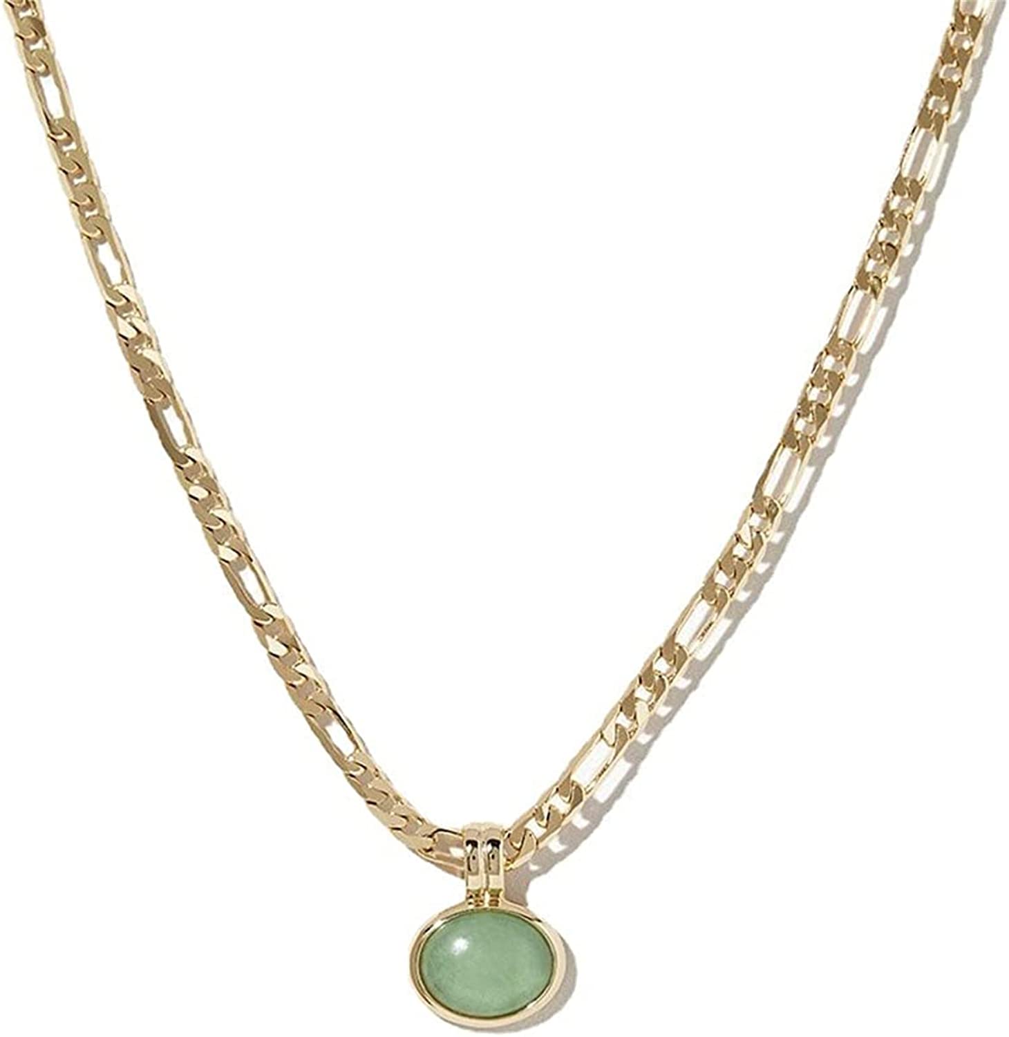 Moonffay Women's Green Stone Necklace,Charm 18k Gold Plated Stainless Steel Snake Chain Jewelry Bling Drop Pendant Choker Necklaces for Girls