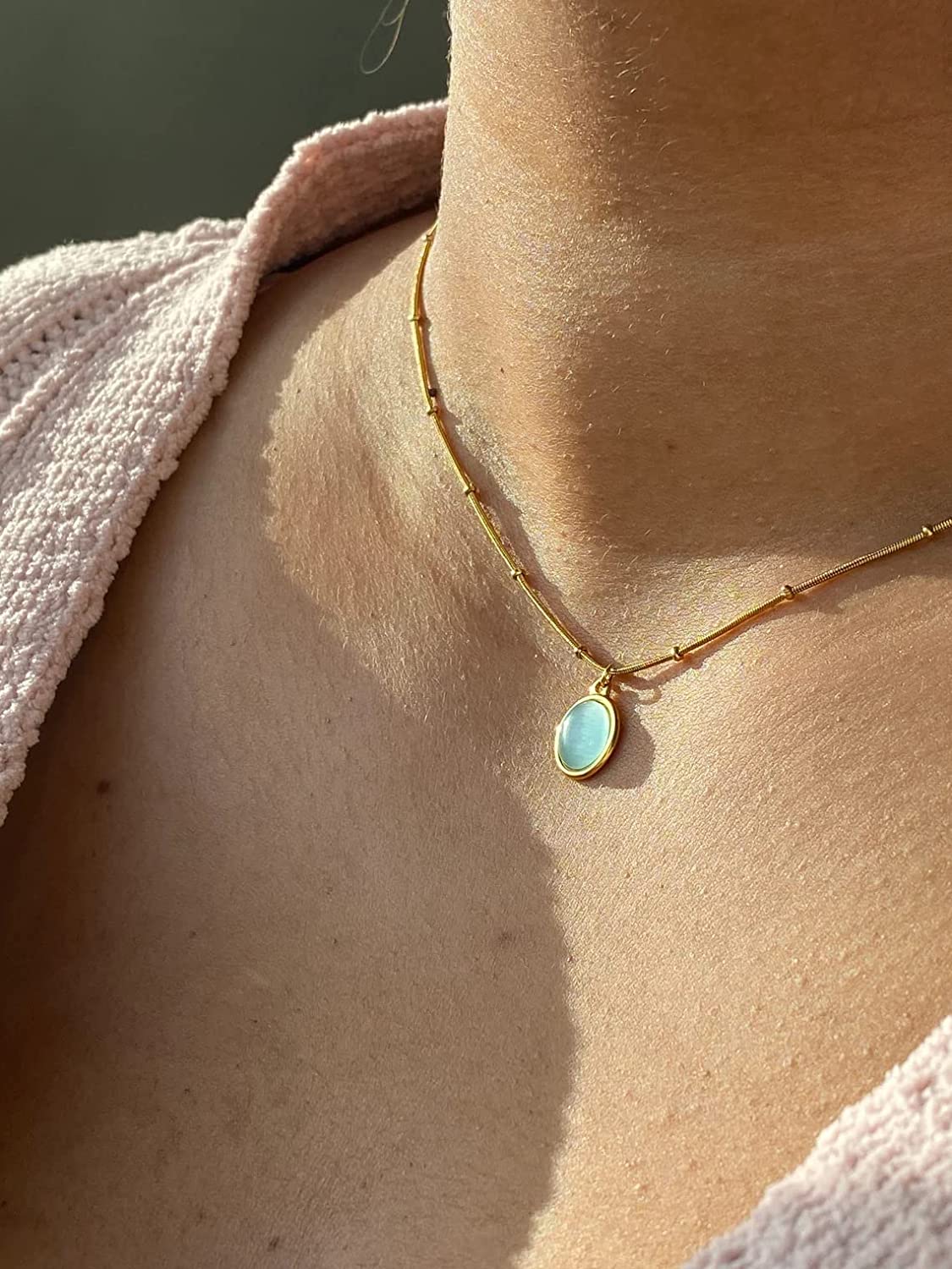 • 【MATERIAL OF TRENDY NECKLACE】 Made of high quality stainless steel with nature green agate, 18k real gold plated, lead free, nickel free and hypoallergenic, no harm to sensitive skin.