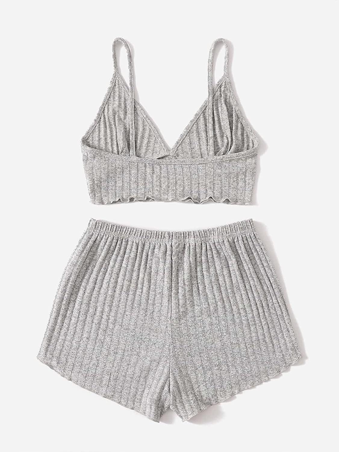 SOLY HUX Women's Sleepwear 2 Piece Lounge Set Pajama Set Rib Knit Spaghetti Strap Bralette Top and Shorts