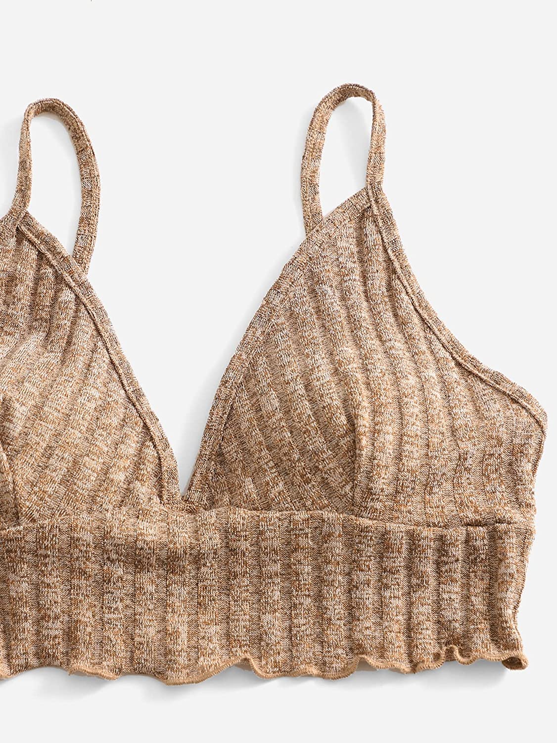 Features: Rib knit, spaghetti strap, sleeveless, elastic waist, lettuce trim, plain color, fashionable