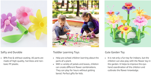 • ✔️It develop the sense of beauty and creativity. Plus it's just fun to put these flowers, stems, leaves and bases together. It is a simple but fun toy.