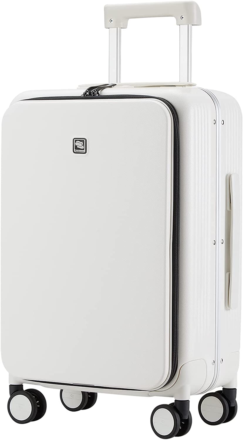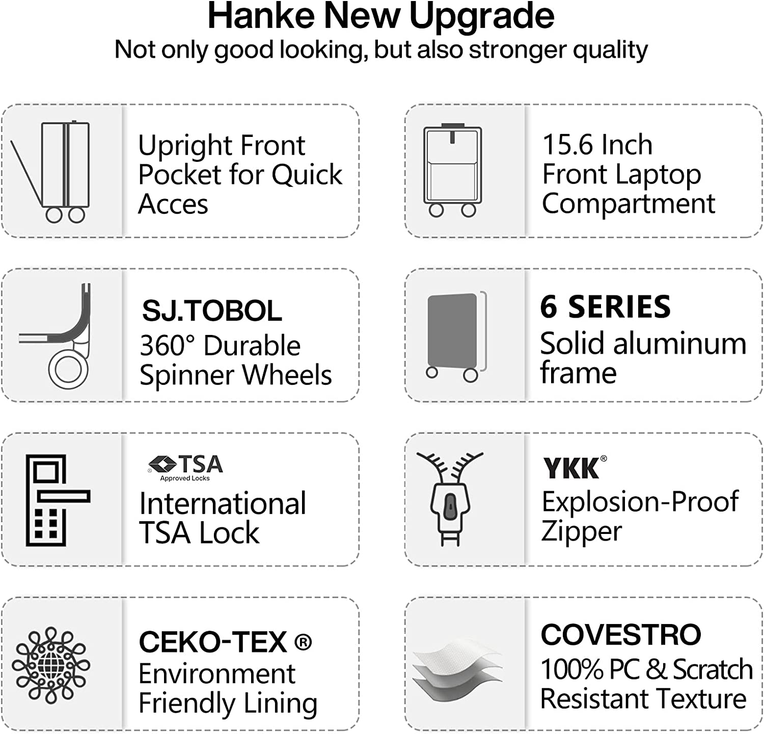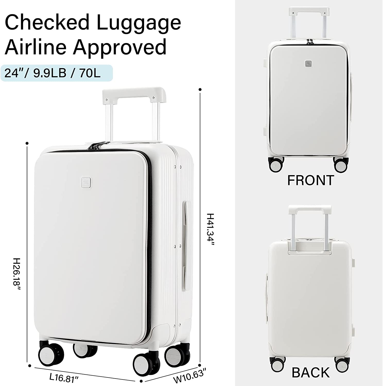Hanke Upgrade 24" Checked In Suitcase with Front Laptop Pocket, Rolling Luggage with Spinner Wheels and TSA Lock,Aluminum Frame PC Hardside Travel Luggage for woman man, 24-inch Smoke White