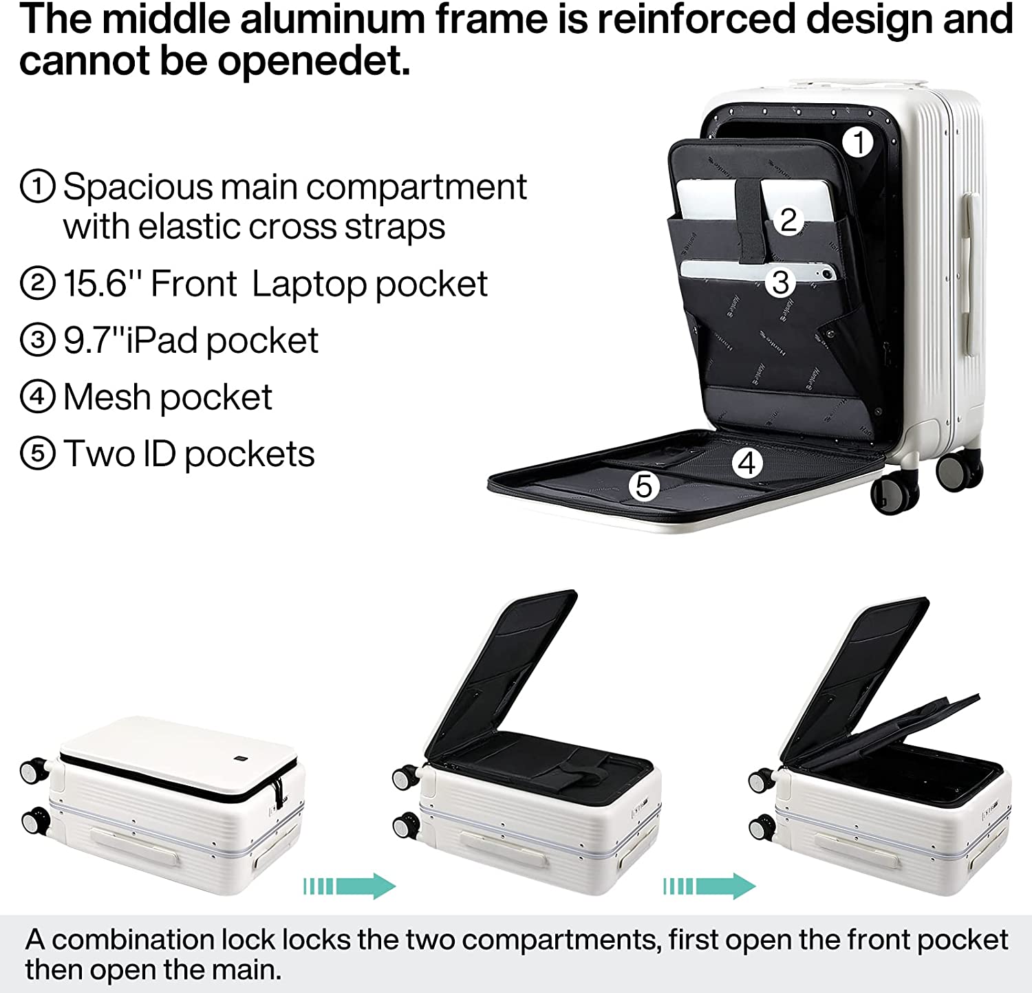 • 【Innovative design】Upright Front pocket design,it's not clamshell opening method,the middle aluminum frame is reinforced design and cannot be opened.You can quickly access to electronic products,easy to deal with office and security check,separate storage from clothes,to keep belongings organized.