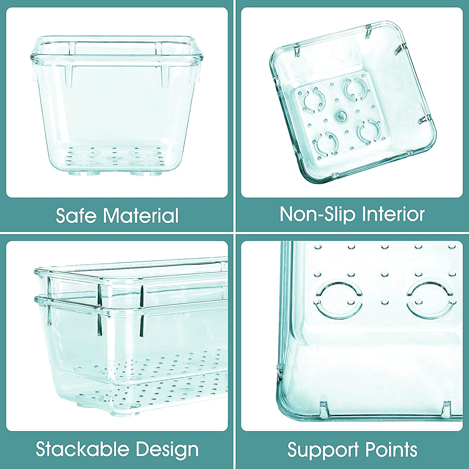• Stackable Design: These clear storage bins stack into one other to help maximize your space. Use them side by side to keep organized. The clear color allows you to save time and find what you need quickly and easily.