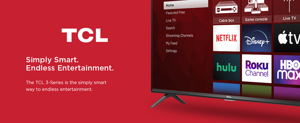 The TCL 3-Series is the simply smart way to enjoy endless entertainment. Enjoy over half a million movies and TV episodes available to stream plus sports, news, music, kids and family, food, science and tech, fitness, foreign language and so much more. Start streaming free TV right from your home screen or browse 250+ free live channels with the Live TV Channel Guide to find what to watch next. Your favorite broadcast TV, streaming channels, gaming console and other devices are front-and-center within a simple, customizable home screen. There’s no more flipping through inputs or wading through complicated menus. The super-simple remote—with about half the number of buttons on a traditional TV remote—puts you in control of your favorite entertainment and includes one-touch shortcuts to popular channels like Netflix.