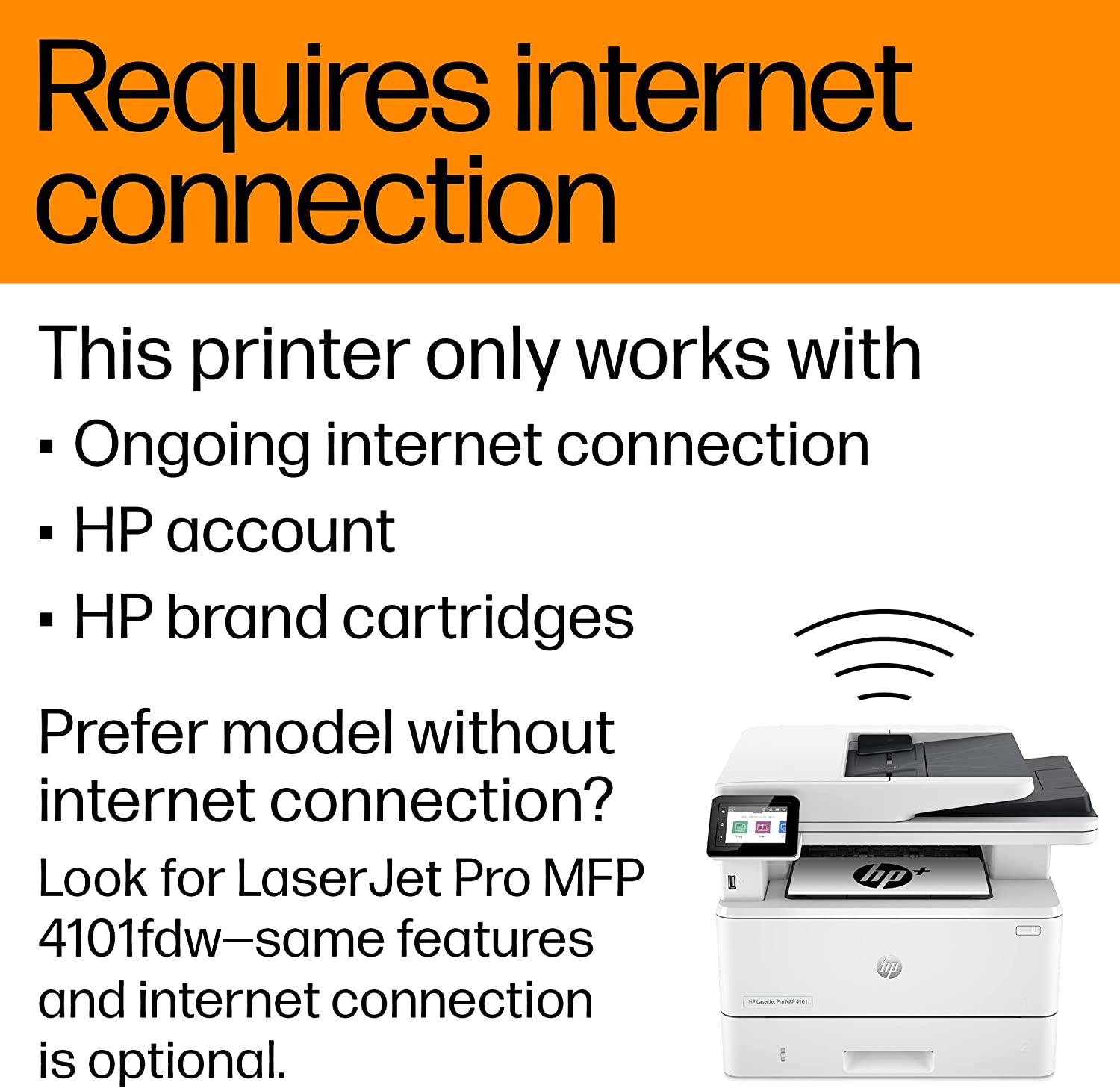HP LaserJet Pro MFP 4101fdwe Wireless Black & White Printer - Smart Printer Requires Internet to Operate | Print, Copy, Scan, Fax | Fast Speeds | Mobile Printing