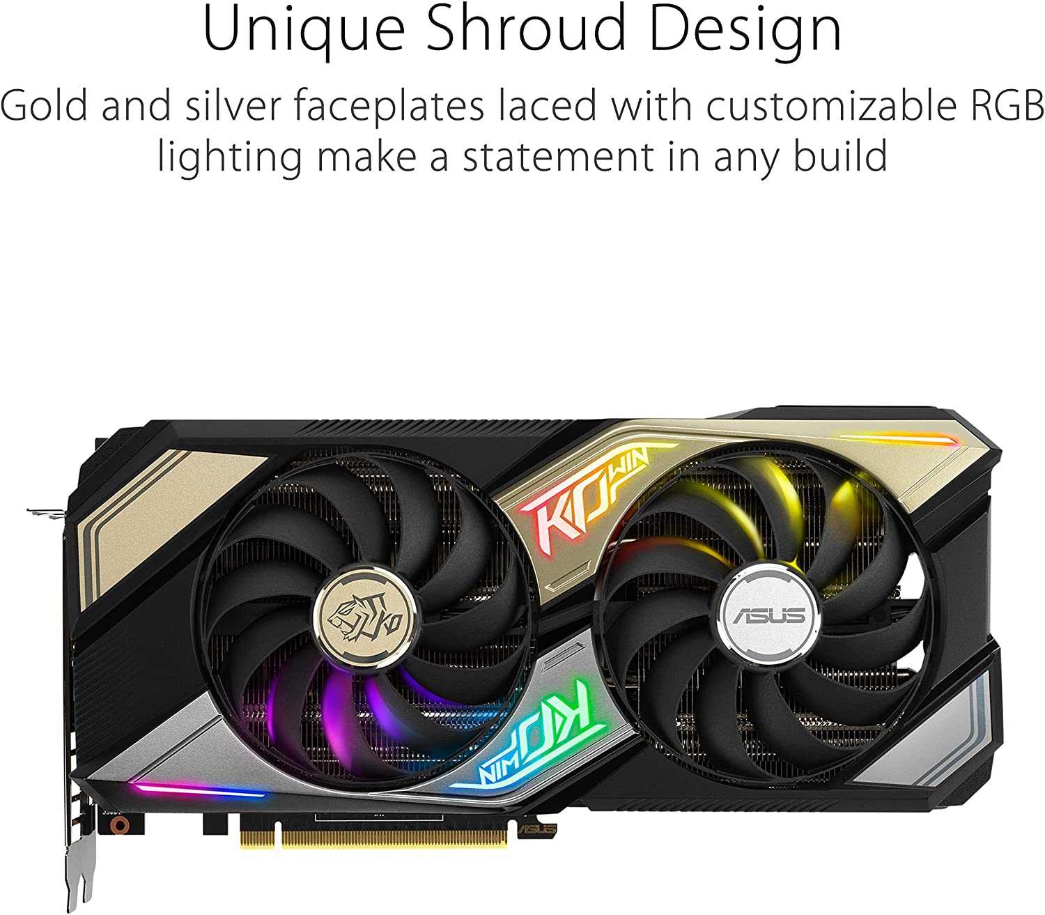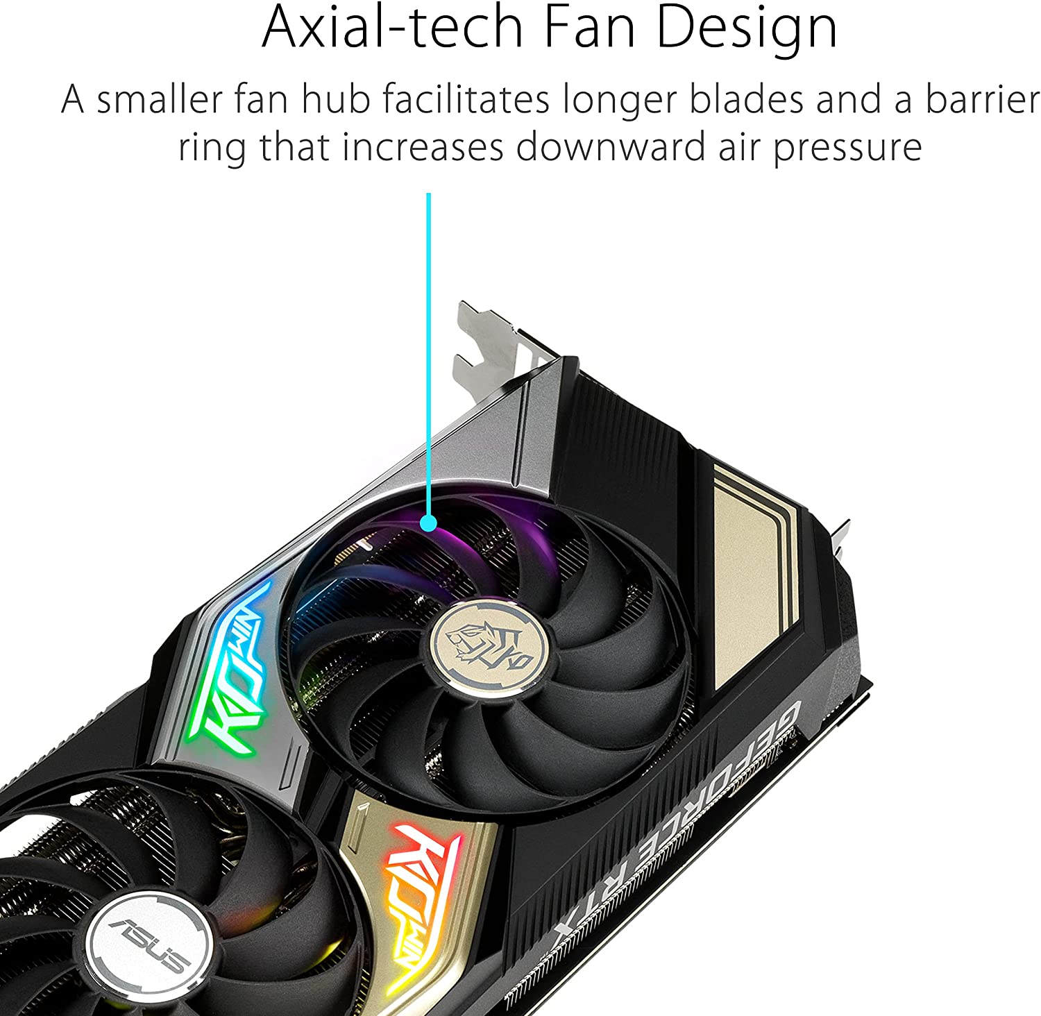 ASUS KO GeForce RTX 30 Series GPUs host the new NVIDIA Ampere architecture with extra shine on performance and durability. Twin fans leverage our Axial-tech design for efficient cooling at low dB levels. Enhancements such as space-grade lubricant, Auto-Extreme Technology, and enduring capacitors keep KO composed for demanding scenarios.