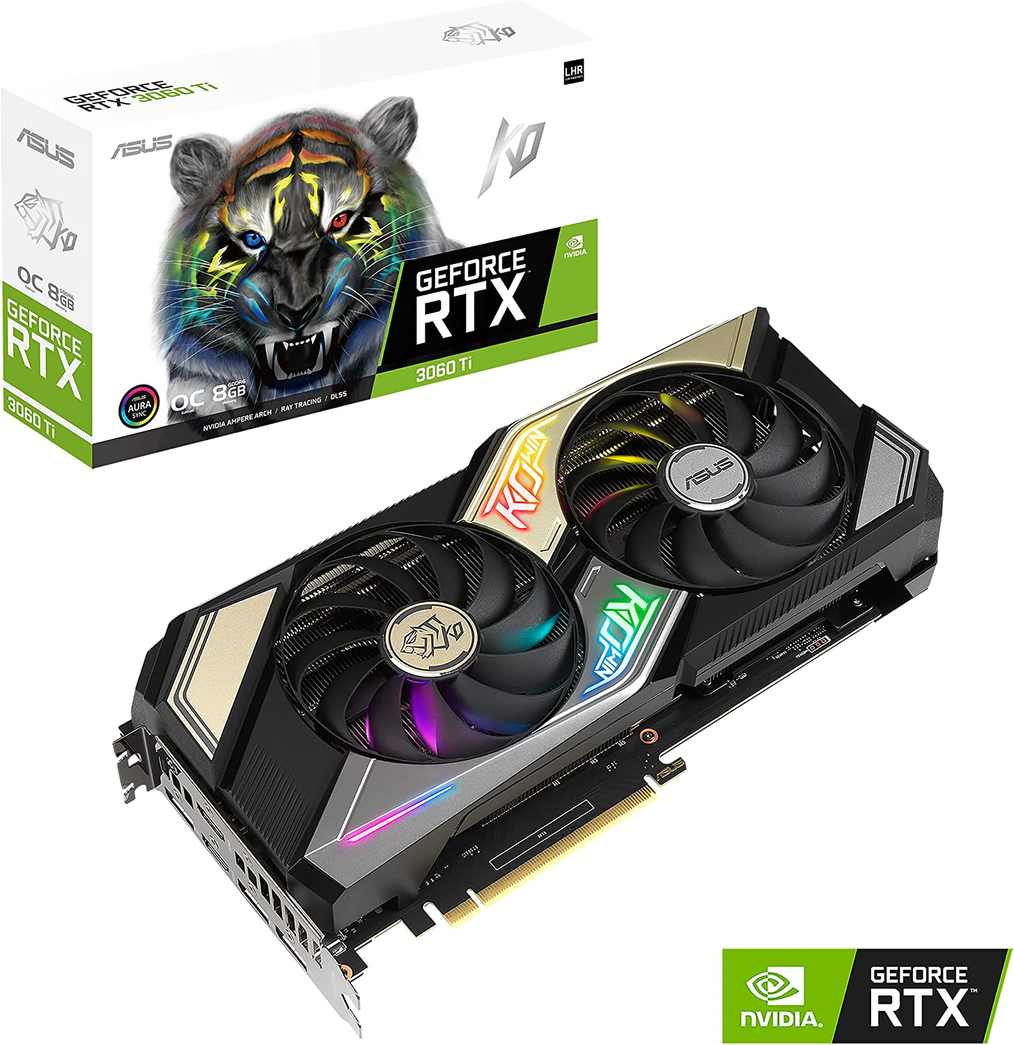 ASUS KO NVIDIA GeForce RTX 3060 Ti V2 OC Edition 8GB GDDR6 Gaming Graphics Card- PCIe 4.0, 8GB GDDR6 memory, LHR, HDMI 2.1, DisplayPort 1.4a, Axial-tech Fan Design, 0dB technology, Enduring capacitors