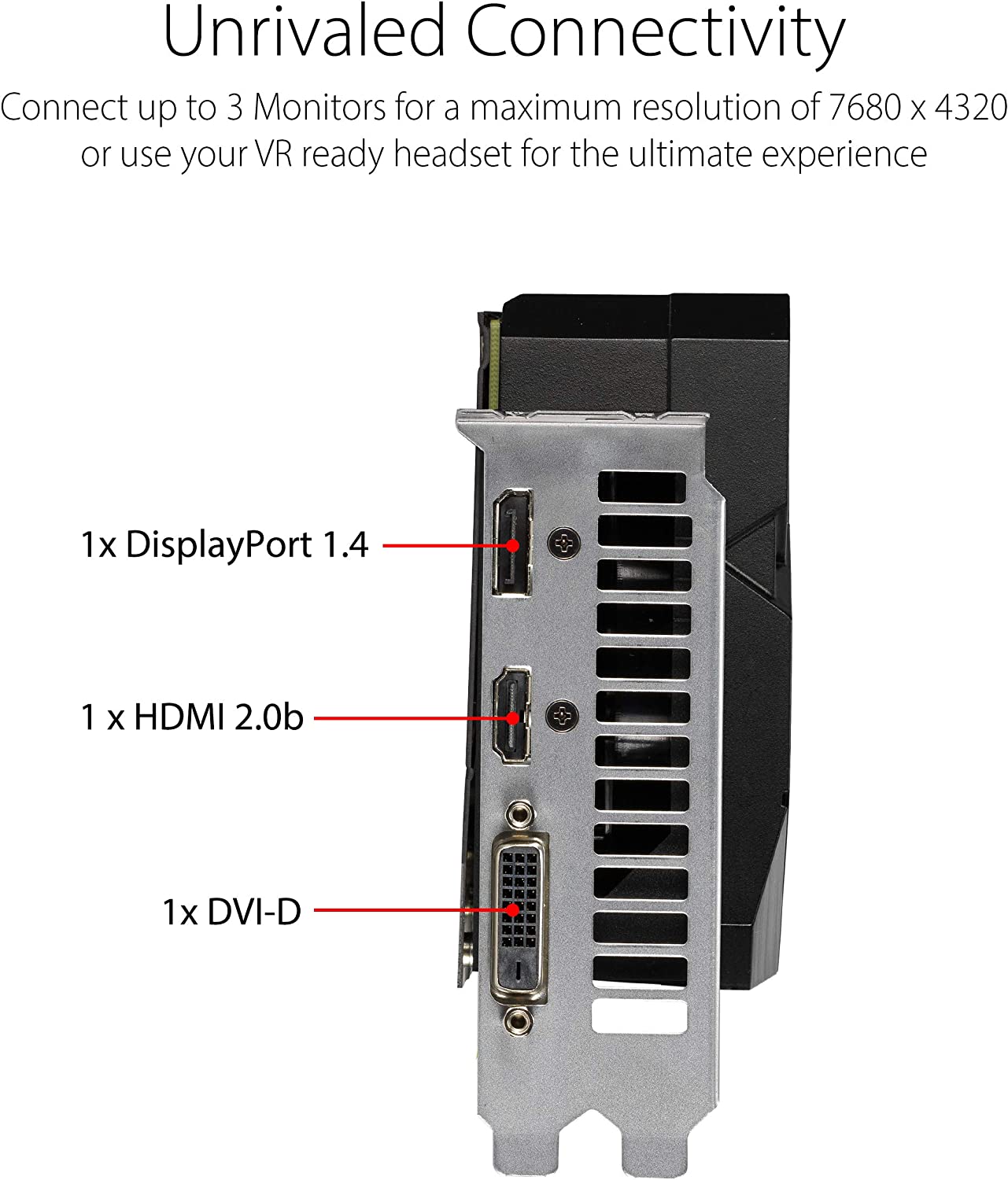 • Supports up-to 3 monitors with HDMI 2.0B, DisplayPort 1.4, and DVI-D ports