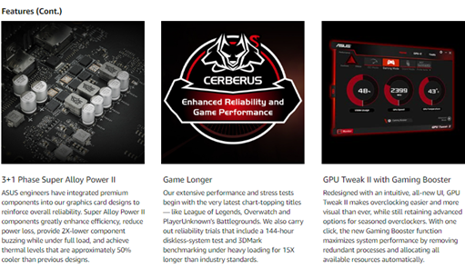 • Gpu tweak II makes monitoring performance and streaming easier than ever, featuring game booster and xsplit gamecaster, all via an intuitive interface
