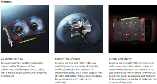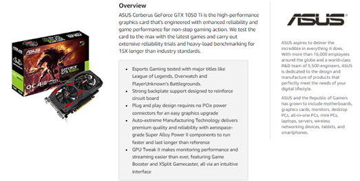 ASUS GeForce GTX 1050 Ti 4GB Phoenix Fan Edition DVI-D HDMI DP 1.4 Gaming Graphics Card (PH-GTX1050TI-4G)