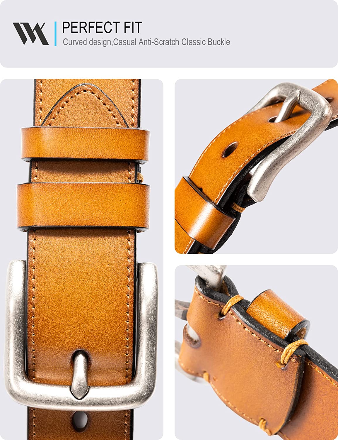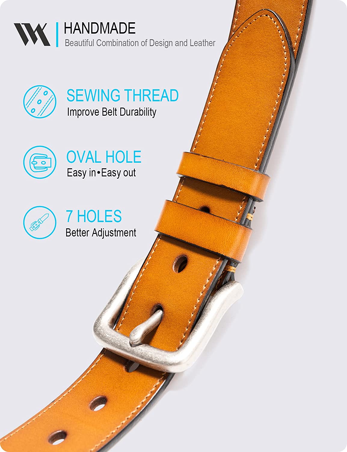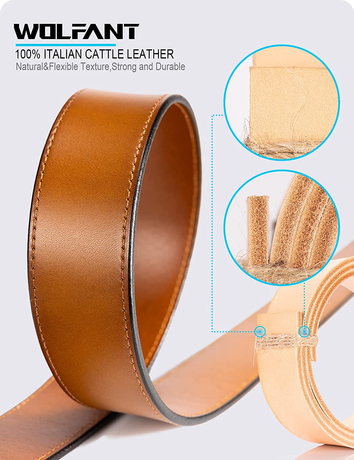 WOLFANT Full Grain Leather Casual Belt for Jeans,100% Italian Real Solid Leather Workwear Belt