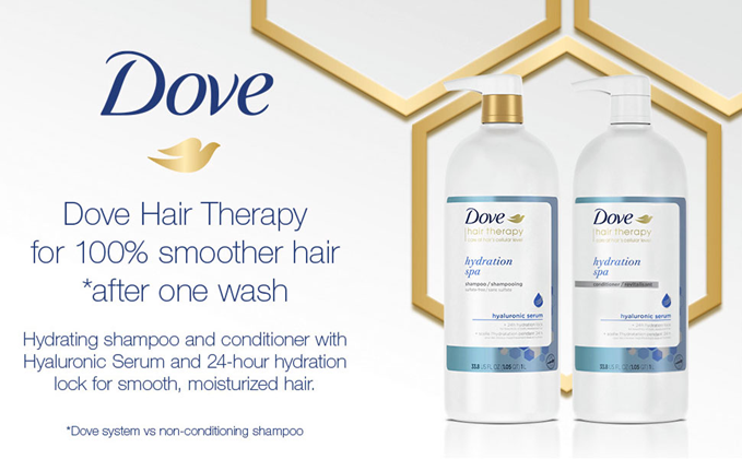Perfect for dry hair, Dove Hair Therapy Hydration Spa Shampoo with Hyaluronic Serum is formulated with our 24-hour hydration lock technology to keep hair hydrated for longer.