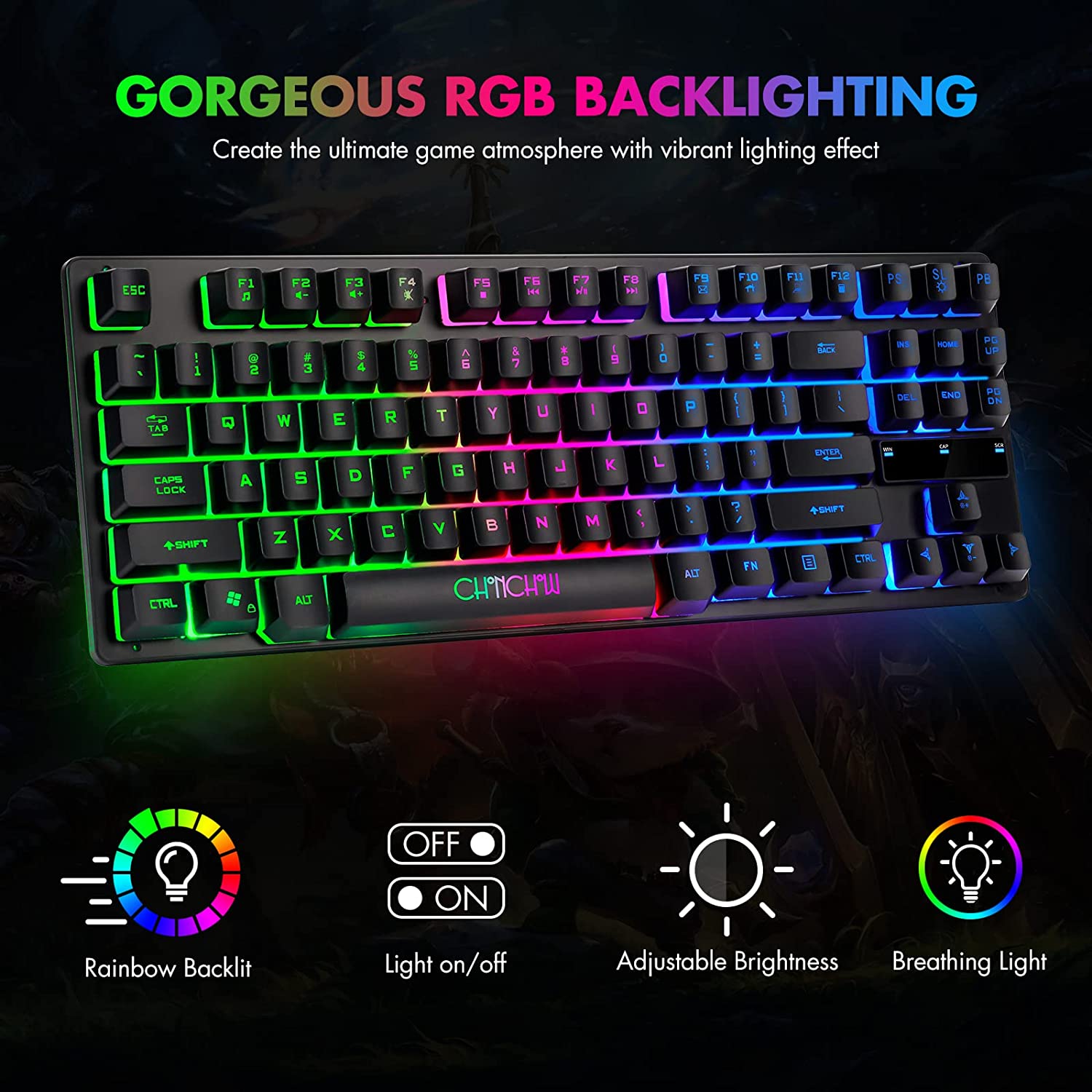 • 【Compact 87-Key Design】There are no additional number keys, and there is more desktop space for you to move the mouse to meet your needs in the office or at home. You will be happy with the space savings. Small gaming keyboard size: 13.5*5.5*1.2 inches.