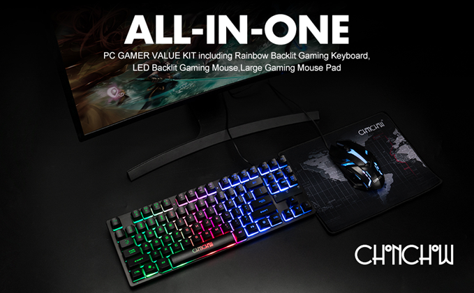 RGB Gaming Mouse and Keyboard, CHONCHOW 87 Keys TKL Gaming Keyboard and Mouse Combo, Wired LED Rainbow Backlit Keyboard 800-3200 DPI RGB Mouse, Keyboard and Mouse Gaming for PS4 Xbox PC Laptop Mac