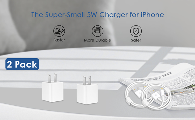 2. (2 Pack) iPhone USB power wall charger + (2 Pack) 6FT MFi Certified lightning cable.