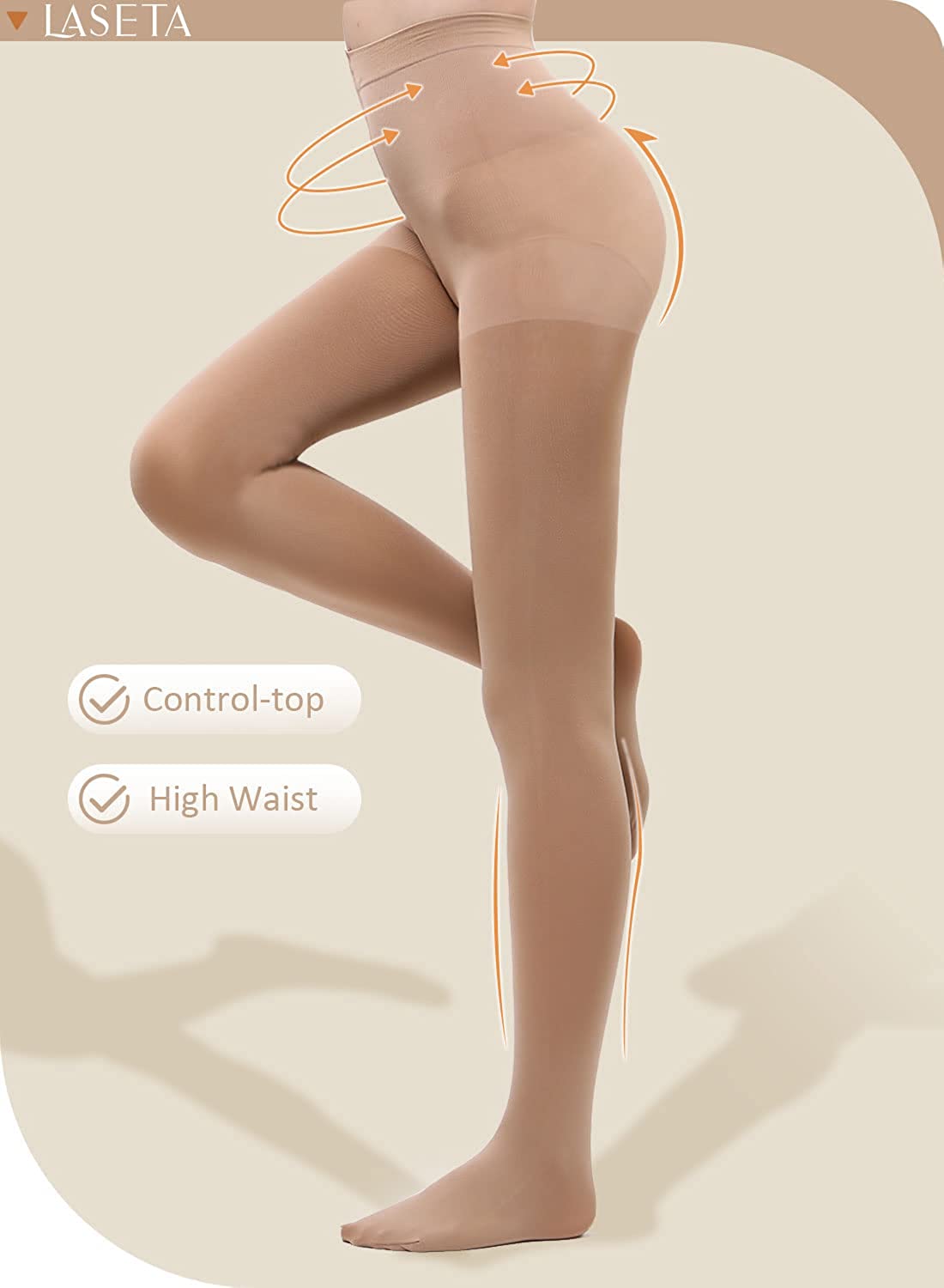 LASETA Tights for Women 120D Control Top Opaque Pantyhose for Winter 2 Pairs