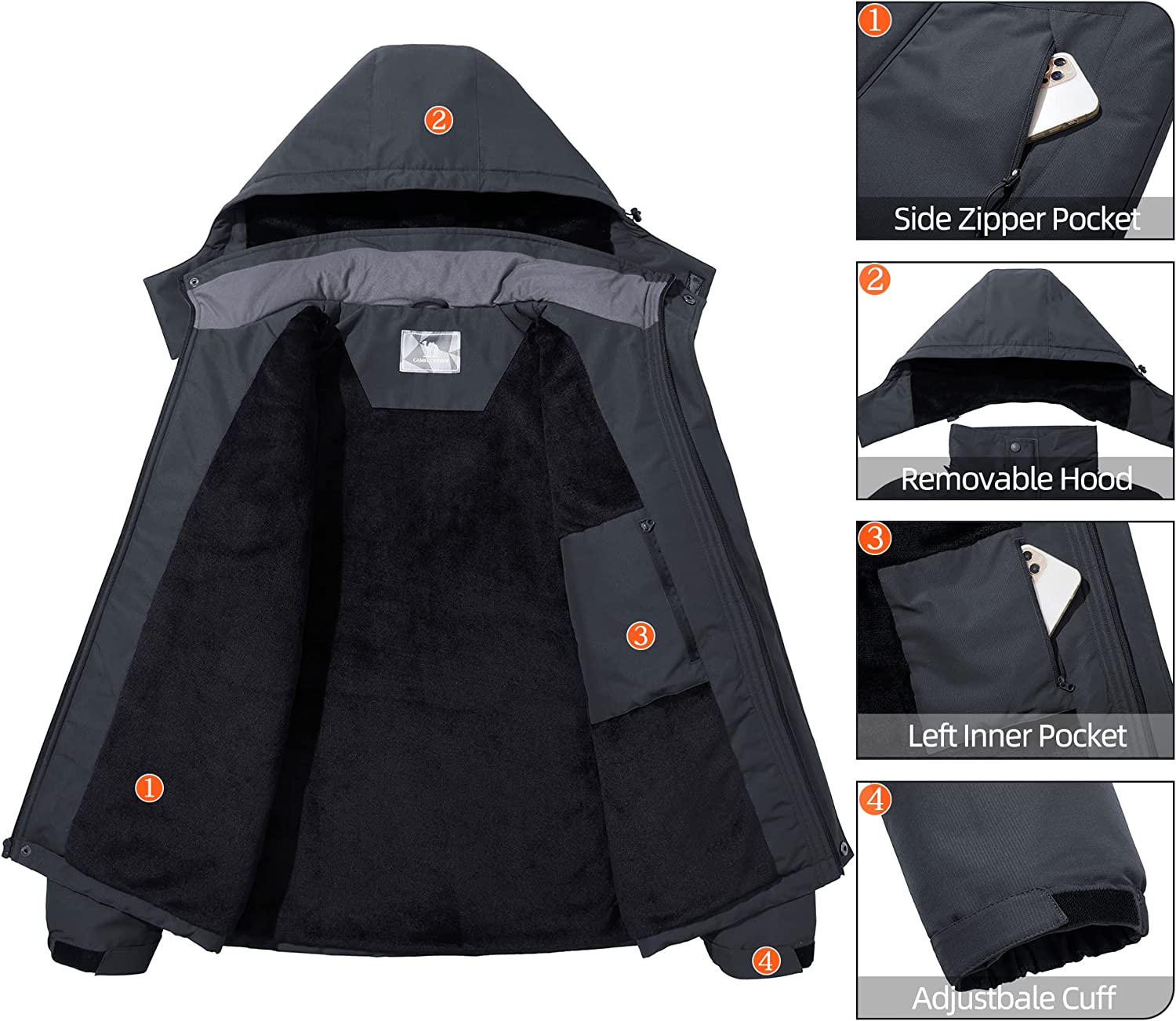 This men's winter coat offers a wide range of outdoor performance, excellent coat for skiing, snowing, hiking, climbing, and so on outdoor activities.