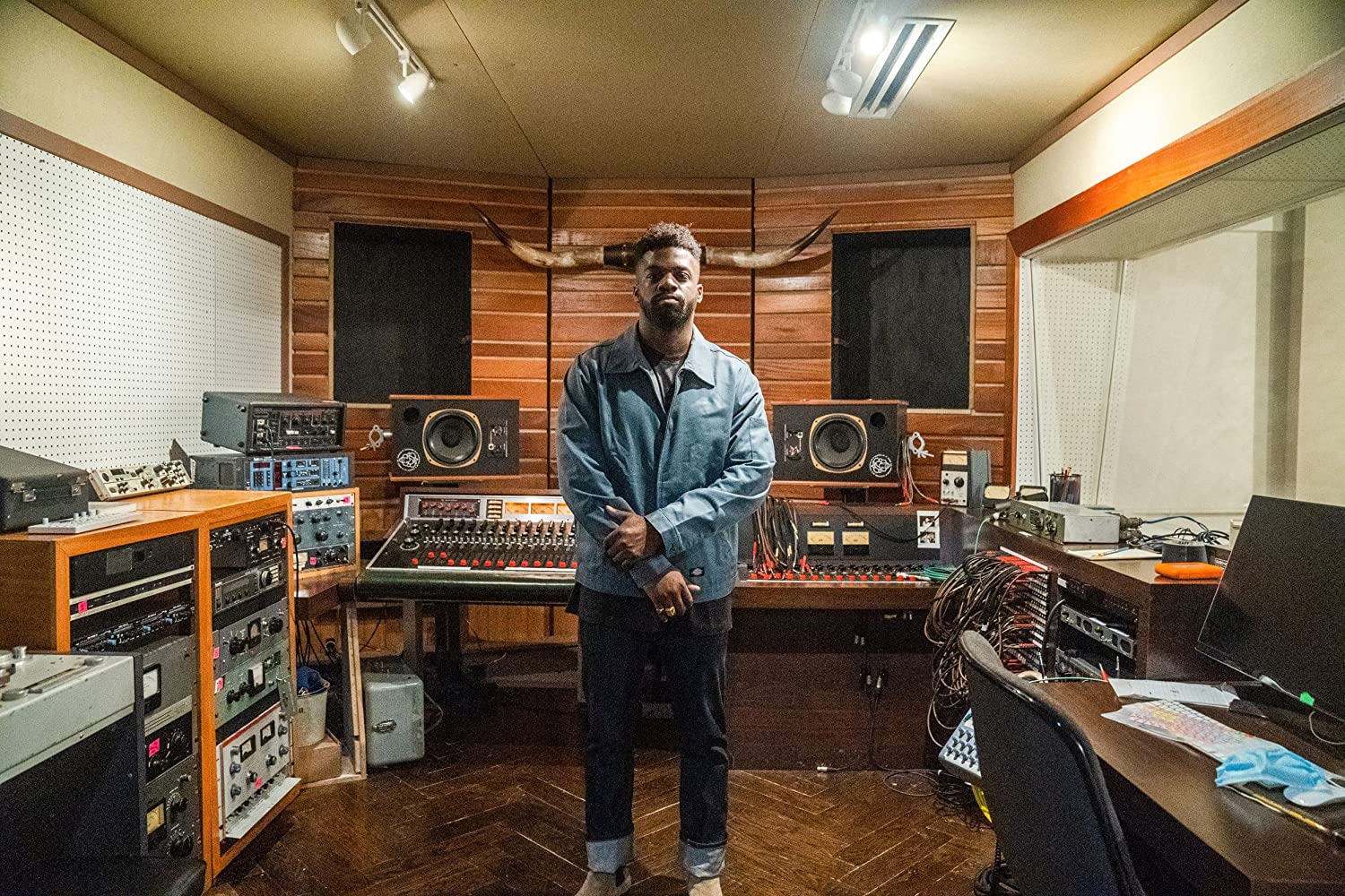 3 men standing in work space