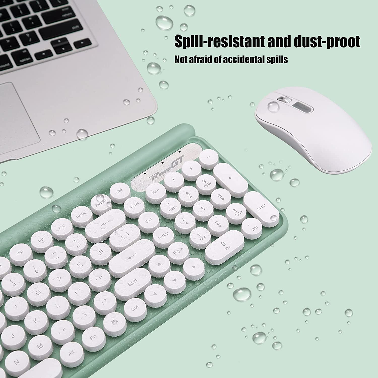Wireless Keyboard and Mouse Combo, RaceGT 2.4G 102 Keys Typewriter Keyboard Wireless with Silent Mouse, Splash-Proof Design Compatible with PC, Windows, Laptop(Cyan)