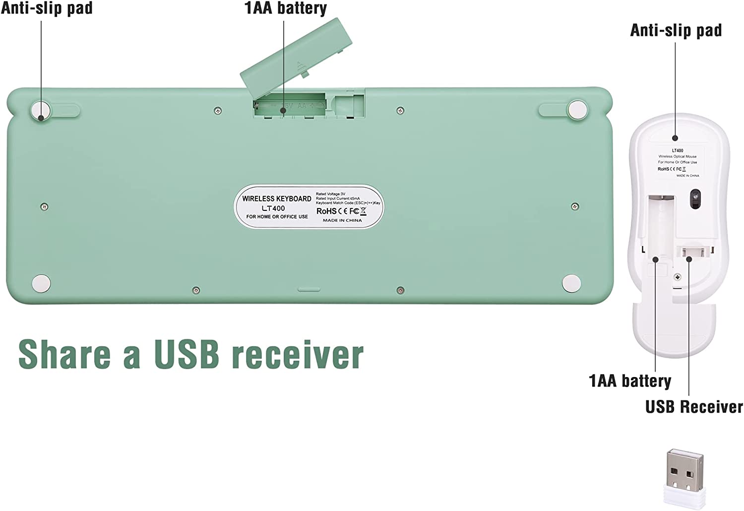 • 【Wireless Keyboard and Mouse Share a USB Receiver】Simplify your setup with a shared USB receiver for both keyboard and mouse. You can easily connect and use the devices without the need for multiple dongles or cables. Enjoy strong and reliable 2.4G wireless connectivity up to 10 meters away.