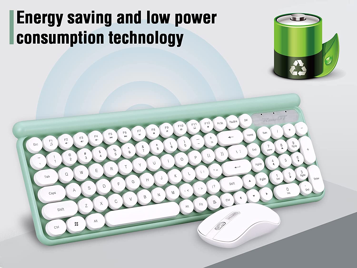 • 【Power Saving Design】The compact wireless typewriter keyboard goes to sleep after 8 minutes of no typing. The wireless mouse will enter power-saving mode after 5 minutes of inactivity and can be awakened by simply moving or clicking the buttons. Automatic power-saving settings ensure the wireless mouse and keyboard conserve power when not in use. (Note: battery not included in the package)
