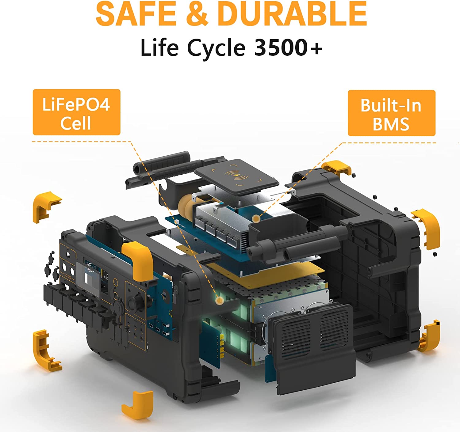 Safety &Durable: The ultra-safe LiFePO4 battery with Build-in BMS assure the self-protection of short circuit, overload, and overheat. 110V Pure-sine wave inverter make sure there is no damage to your sensitive electronic devices.